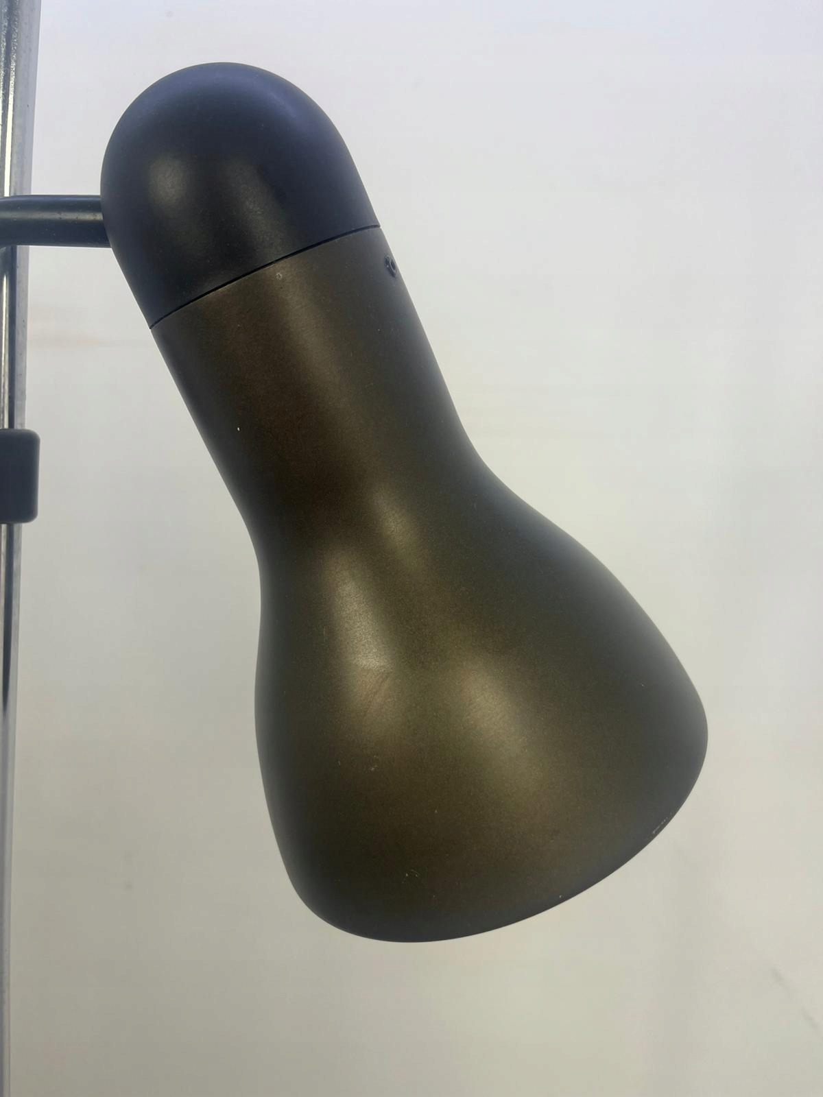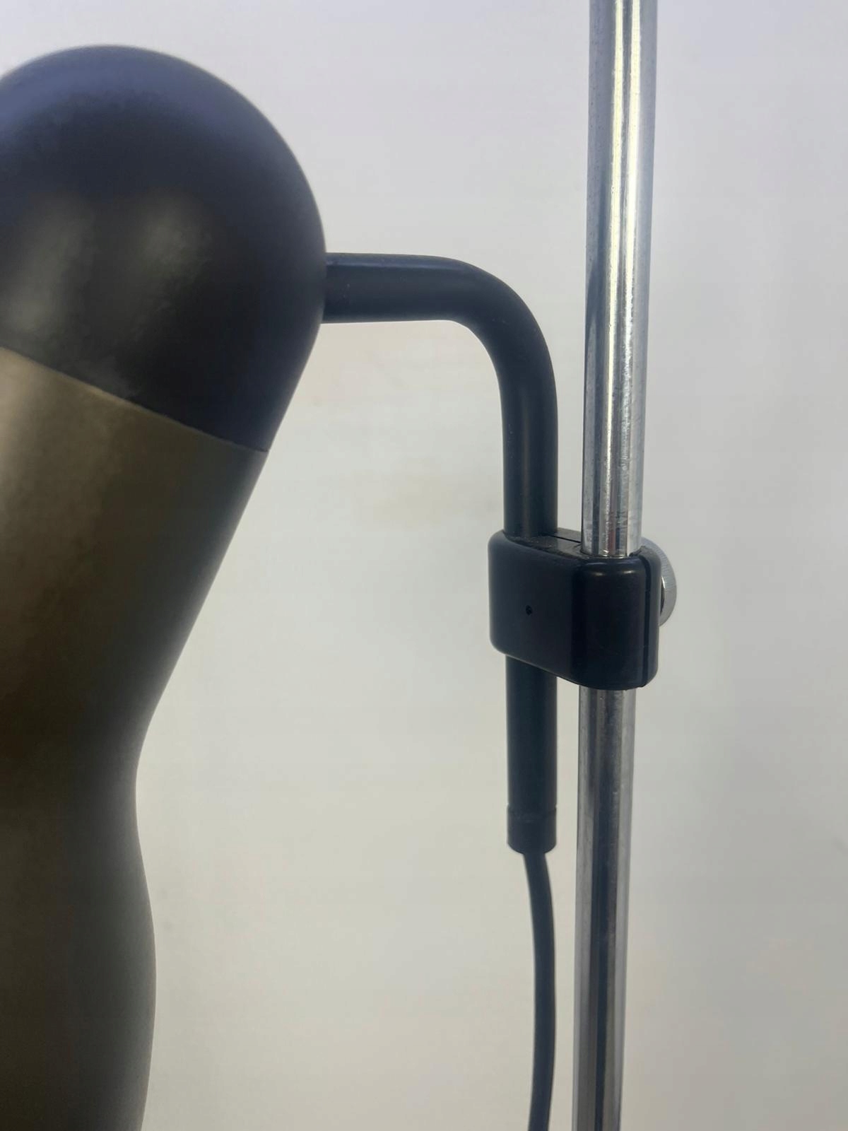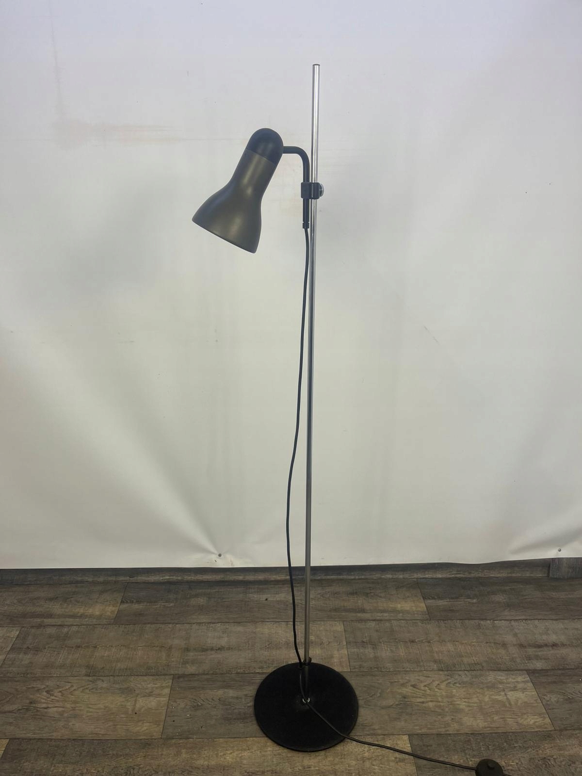 Мінімалістичний одноточковий чорно-сірий торшер із рухомим абажуром.