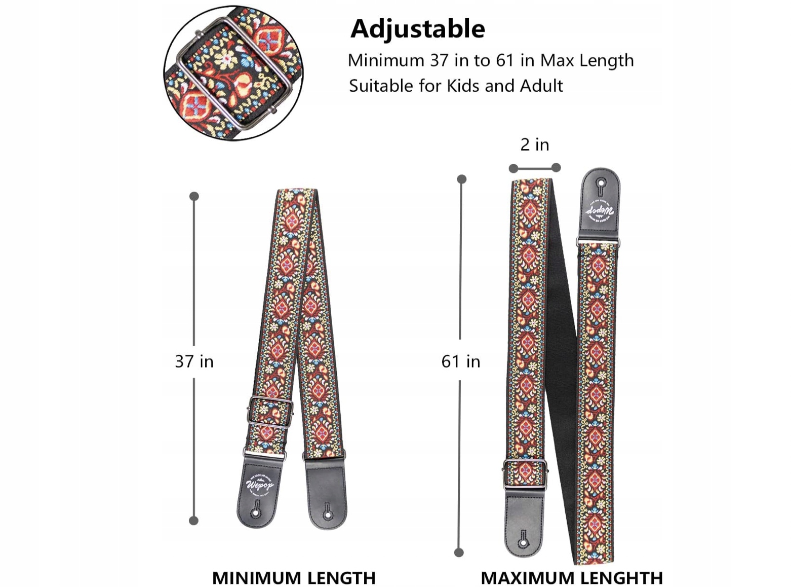 Регульована довжина та металева пряжка , ширина 2 дюйма, довжина 36,6–61,4 дюйма, з металевою пряжкою для плавного регулювання.