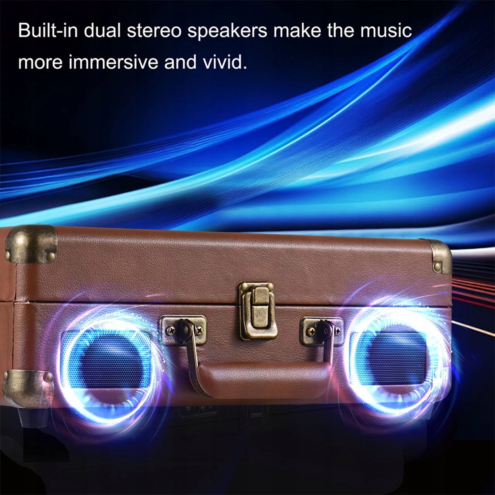 - 【Універсальний програвач вінілових платівок】: цей старовинний програвач призначений для відтворення вінілових платівок розміром 7, 10 і 12 дюймів, забезпечуючи ностальгічне, але сучасне звучання. Він оснащений вбудованою звуковою системою HiFi без втрат, яка забезпечує високоякісний звук, покращуючи ваші враження від прослуховування.