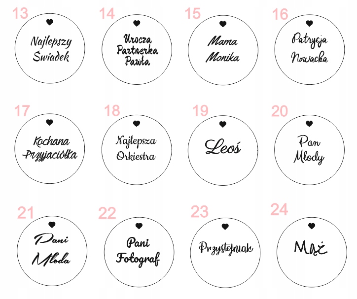Шановні, купуючи у нас, наприклад, 100 віньєток і надсилаючи список із 98 осіб, пам’ятайте, що ми виготовляємо віньєтки відповідно до списку. На жаль, ми не здогадаємося, що дві віньєтки, яких немає, нібито порожні. Якщо ви хочете, наприклад, 5 пробілів, напишіть про це в листі. Тоді ми їх обов’язково виготовимо :)