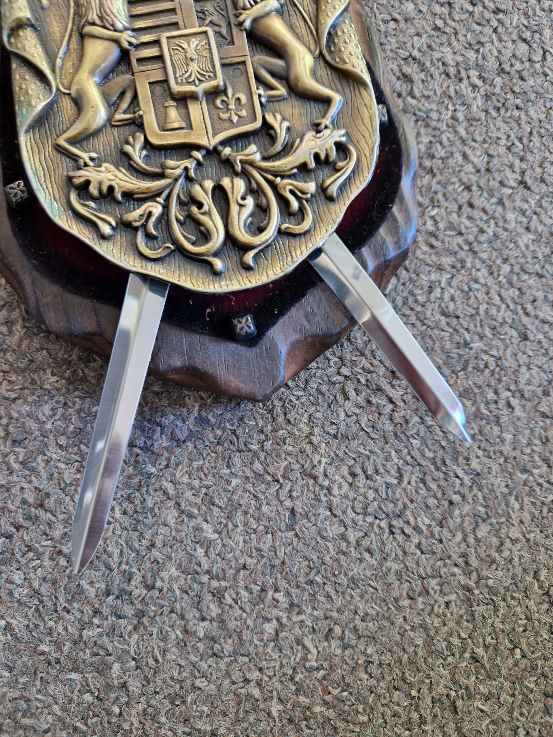 . перемога). Представлена репліка лицарського предка Паноплі виглядає надзвичайно вражаючою. Аналогічно на інші такі декоративні мотиви, на лицарській предкові паноплі є декоративні та символічні ознаки.