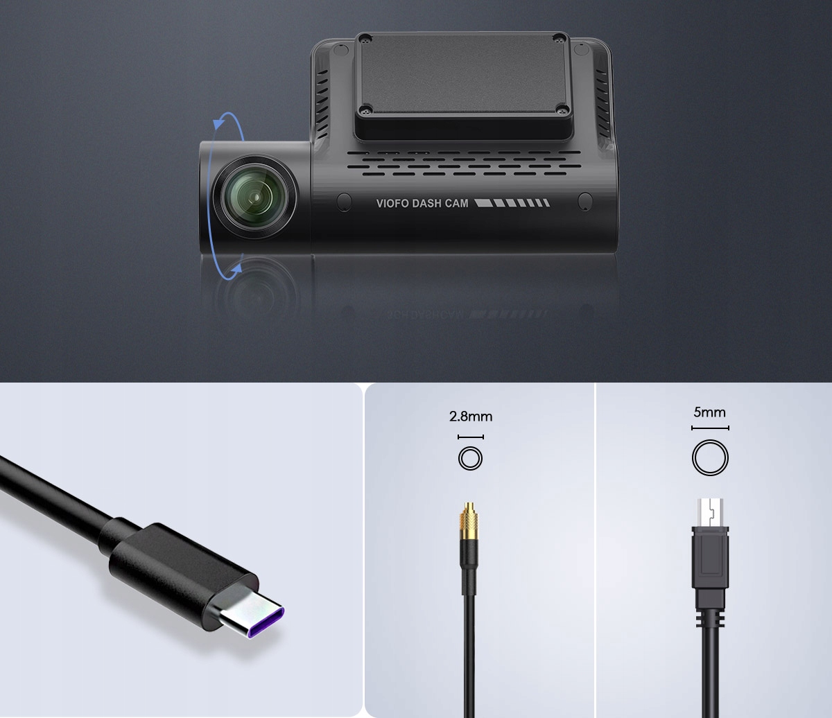 Модель A139 використовує супер тонкі концентричні кабелі для передачі відео сигналу між додатковими камерами (внутрішні + ззаду), які суттєво полегшують монтаж. Крім того, ця модель камери працює від розетки USB -типу C. Завдяки цьому джерело живлення є більш стабільним, а сама кабельна пробка менша, ніж MiniusB або MicroUSB.