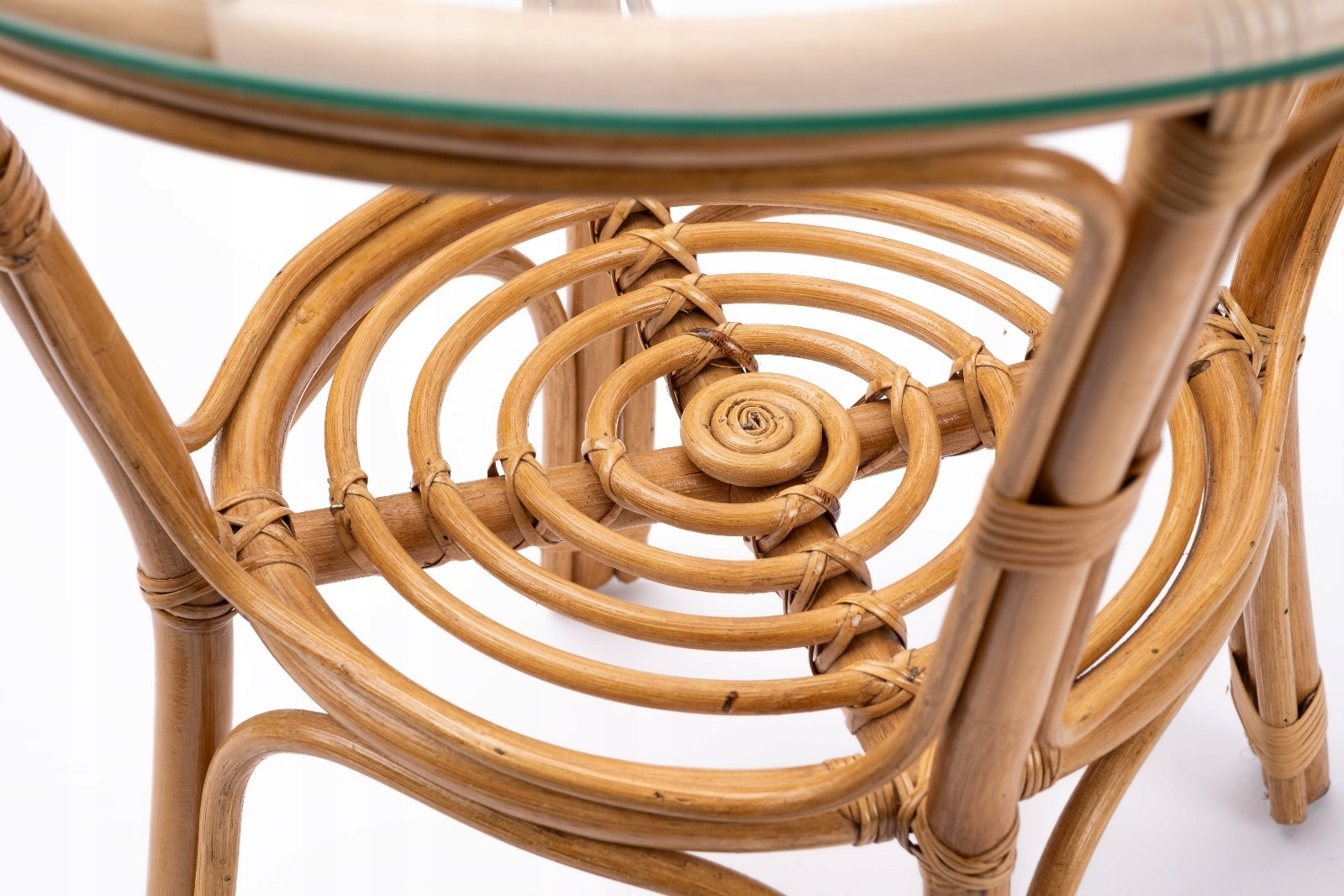 Набір характеризується використанням благородних матеріалів найвищої якості, які бамбук з ротанговим плетінням. Стіл додатково включає скляну стільницю товщиною 5 мм. Крім того, кольори меблів виконані в природних відтінках деревини, що робить їх ідеальним поєднанням для будь-якого саду.