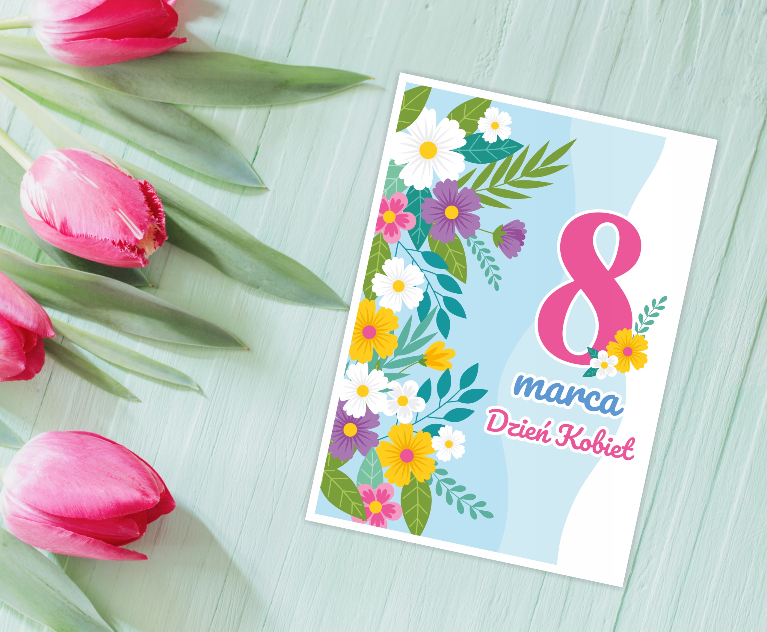 Барвиста карта з квітковим мотивом стане ідеальним подарунком, щоб дати жіночий день.