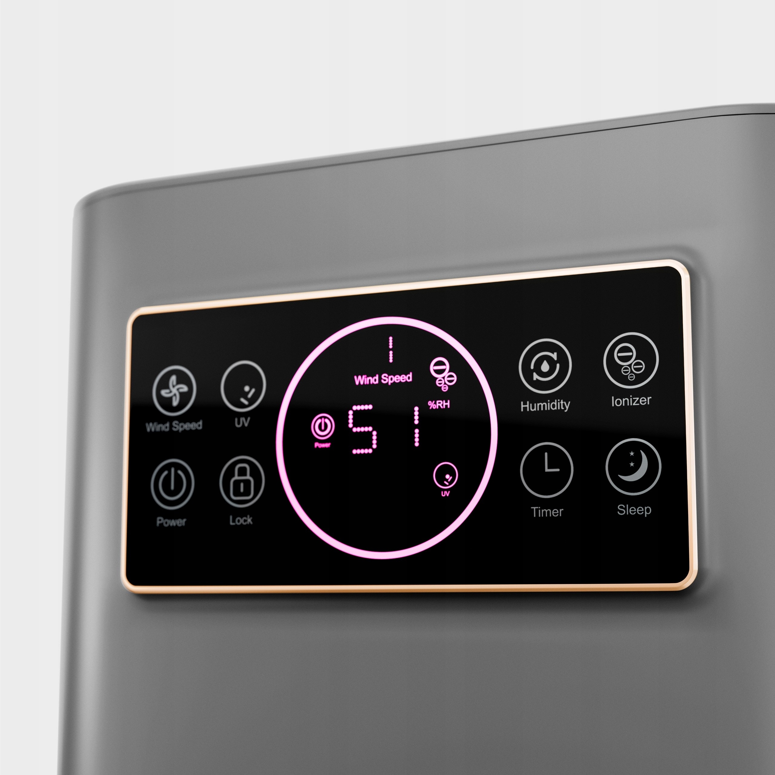 сенсорна панель дозволяє швидко та інтуїтивно керувати всіма функціями. За допомогою одного дотику ви можете регулювати робочий режим пристрою, рівень зволоження або активувати спеціальні функції. На дисплеї відображається поточна інформація про роботу пристрою, наприклад, рівень вологості повітря та вибраний режим зволоження.