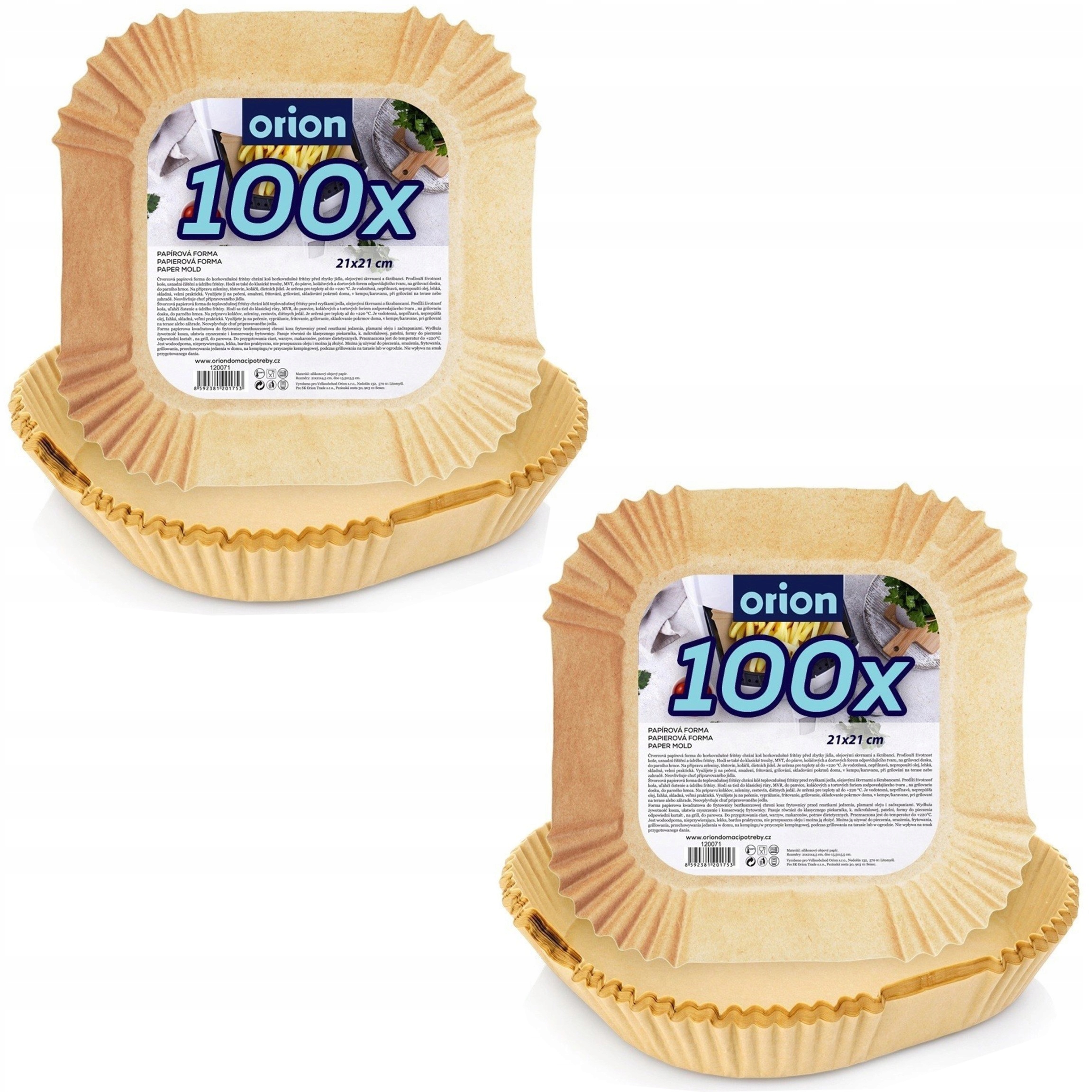 Набір 100 одноразових картриджів для фритюрниці повітряного фритюрниці. З їх допомогою ми можемо зручно обсмажувати страви у фритюрниці, а також у духовці або нагріванням в мікрохвильовій печі. Картриджі збережуть фритюрницю чистим. Картриджі не змінюють смак їжі, міцні та здорові. оригінальний продукт чеського бренду Orion. вироблявся відповідно до європейських стандартів. Матеріал коричневий