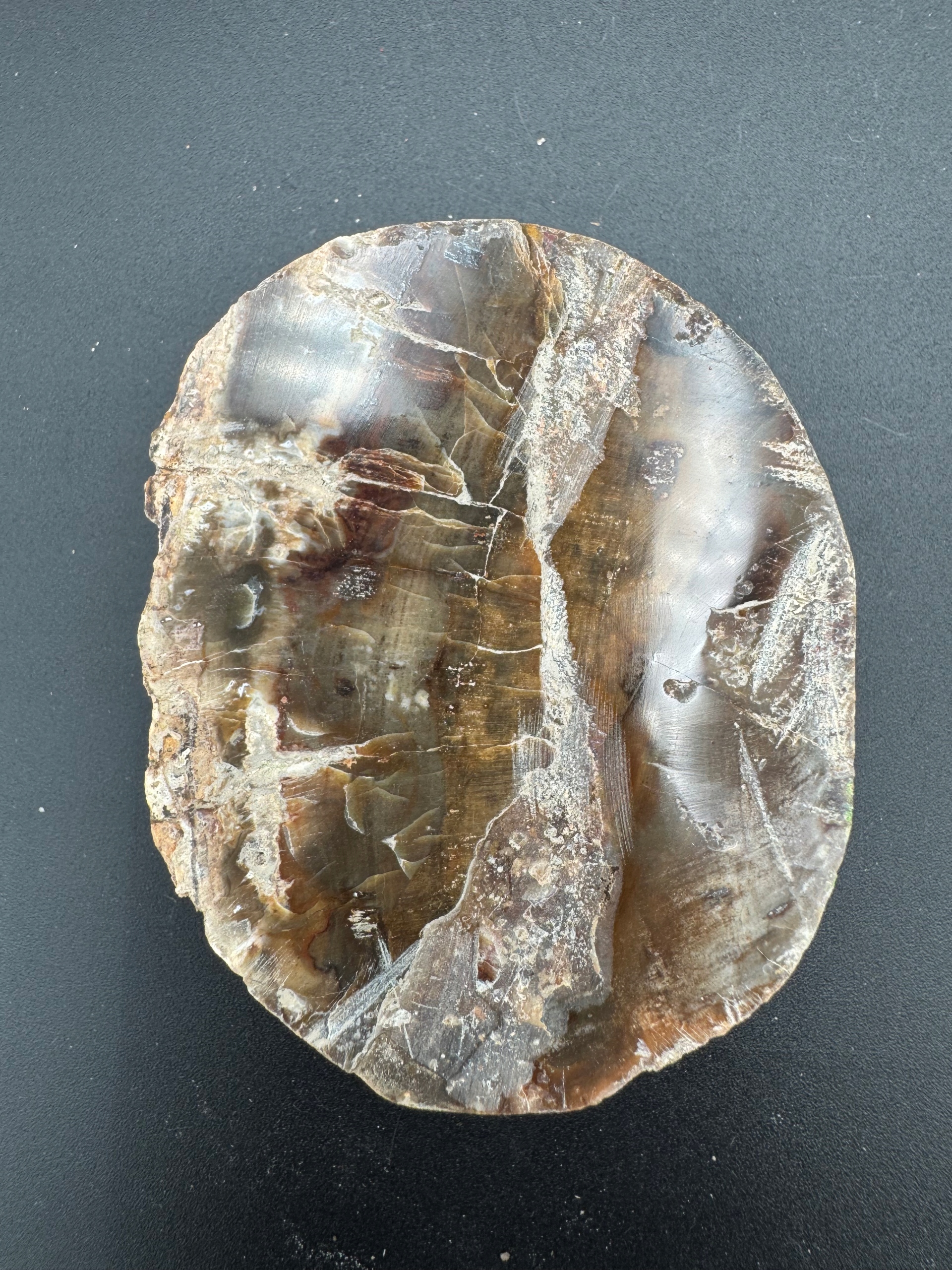 Натуральний пластир скам’янілої деревини , відшліфований з обох боків.