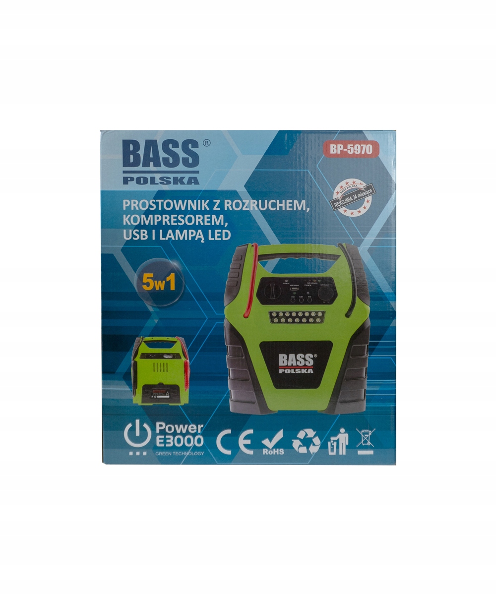 - Багатофункціональний пусковий пристрій від Bass Polska дозволяє завести автомобіль, зарядити телефон, освітлити дорогу та накачати шини.