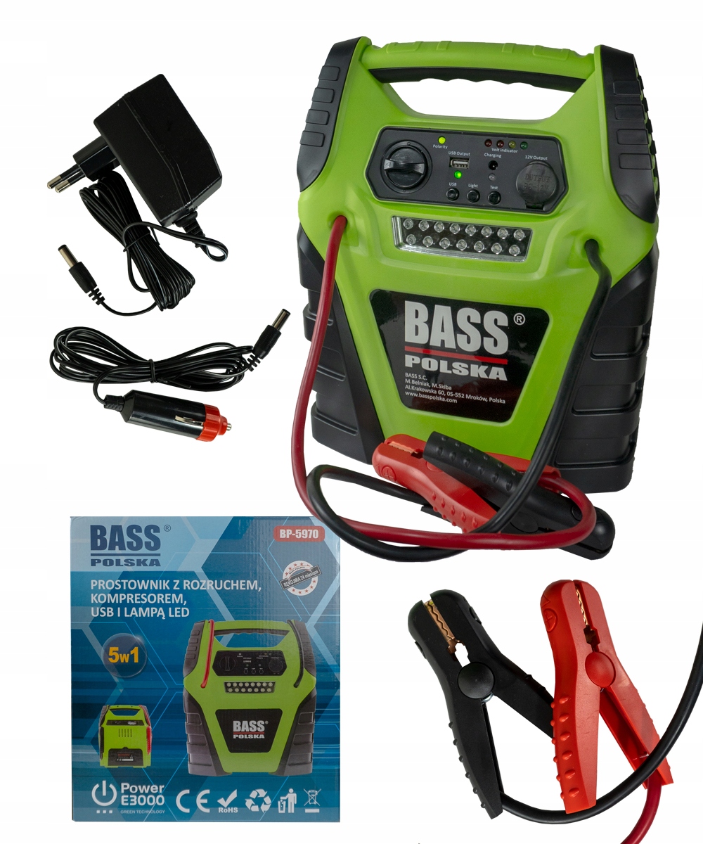 - Багатофункціональний пусковий пристрій від Bass Polska дозволяє завести автомобіль, зарядити телефон, освітлити дорогу та накачати шини.