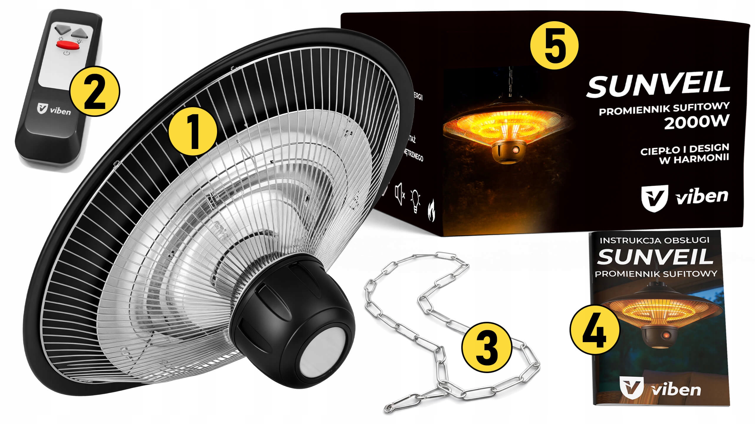 VIBEN SUNVEIL Нагрівальний світильник стельовий нагрівач з дистанційним керуванням для тераси 2000 Вт