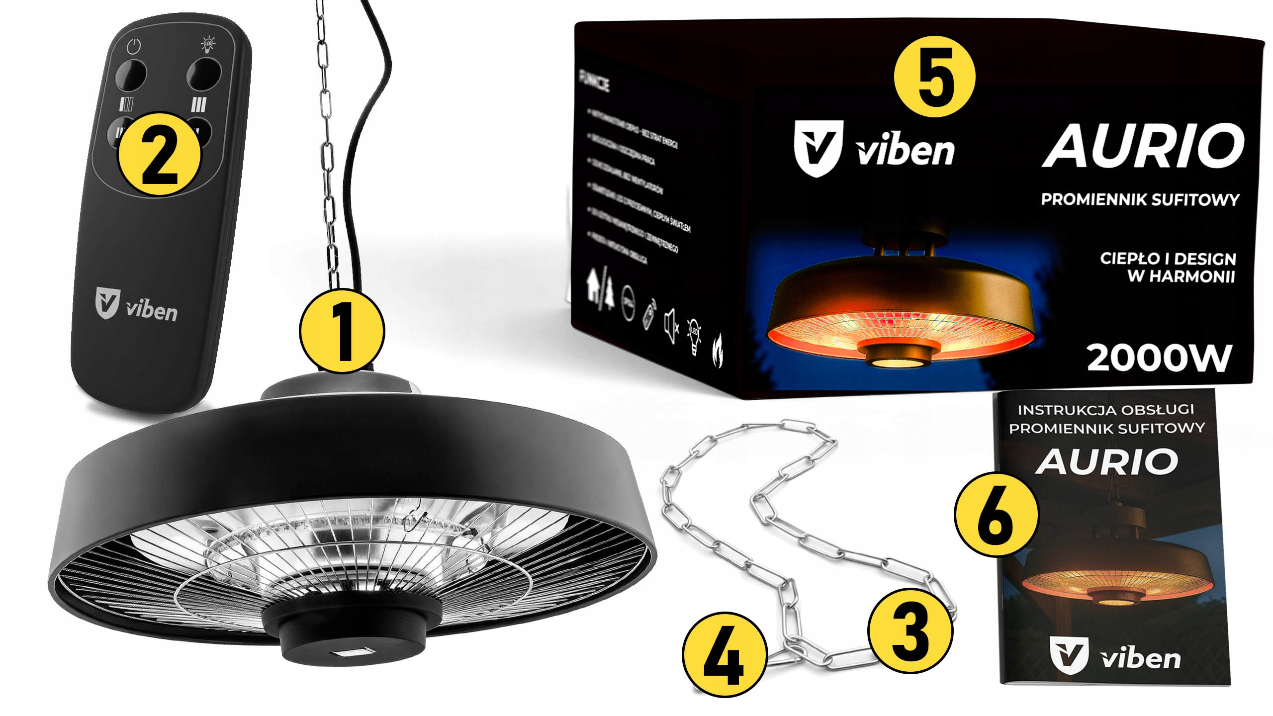 VIBEN AURIO Радіантовий стельовий світильник, лампа для обігріву, обігрівач для патіо з дистанційним керуванням 2000 Вт