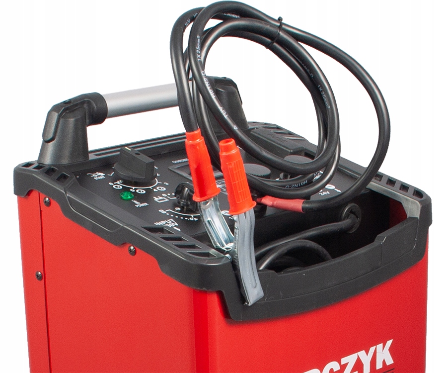 Зарядний пристрій Kupczyk DFC-650T розроблений для зарядки свинцево-кислотних акумуляторів струмом 12В або 24В. і для запуску легкових автомобілів, мікроавтобусів, автобусів з бензиновими і дизельними двигунами, невеликих вантажівок і легкої будівельної техніки. Прилад оснащений інтуїтивно зрозумілою панеллю управління з практичним електронним дисплеєм. На панелі є зручні перемикачі: 12В/24В, кнопки повільної та швидкої зарядки та кнопка запуску. Крім того, випрямляч має запобіжник, який захищає від перевантаження. Додатковими перевагами пристрою є колеса, які полегшують транспортування зарядного пристрою, і передня кишеня для приховування кабелів.