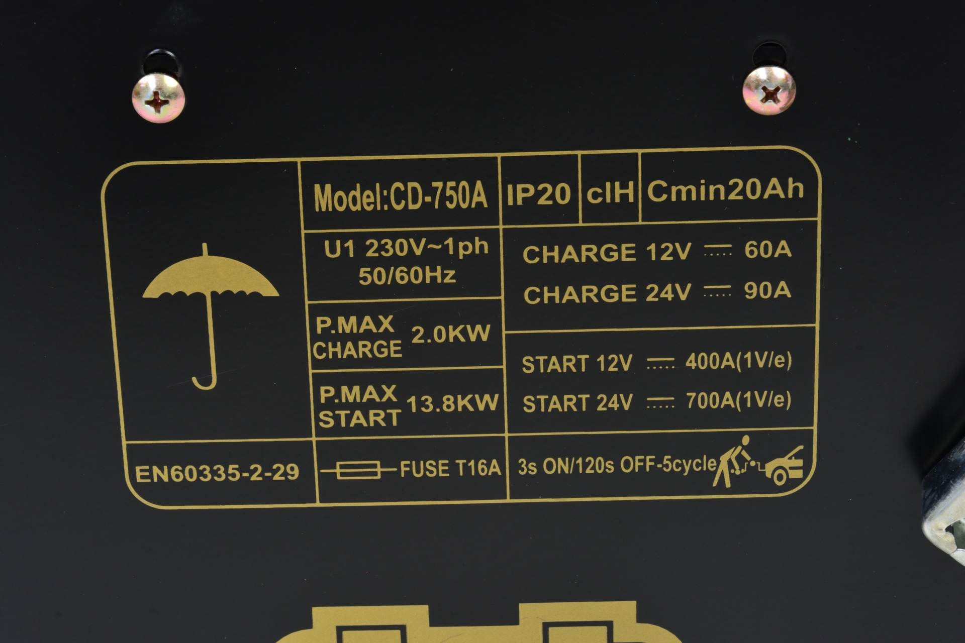 Клас 750 має перемикач часу, який після встановленого часу минув автоматично вимикає пристрій і, таким чином, запобігає перезавантаженню акумулятора під час швидкої зарядки. Він ідеально підходить для початку початку транспортних засобів з бензиновими двигунами та дизелем, такими як вантажівки, фургони, сільськогосподарська техніка тощо