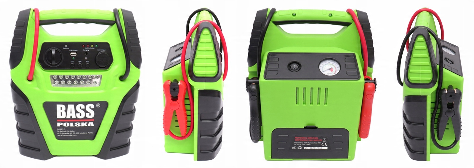 Багатофункціональний пусковий пристрій BASS POLSKA дозволяє запускати автомобіль, заряджати телефон, освітлювати дорогу та накачувати шини.