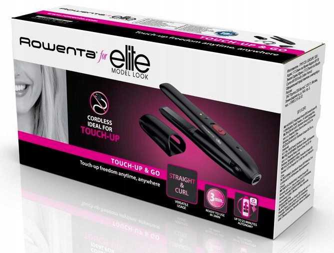 Праска для волосся Rowenta For Elite Touch-up & Go відкриє вам новий вимір укладання. Пристрій забезпечує повну свободу пересування завдяки бездротовій роботі. Він дозволяє легко випрямляти, завивати і створювати хвилі. Керамічне покриття робить волосся гладким і блискучим. Оновіть свою процедуру краси за допомогою випрямляча, створеного для повної зручності: літій-іонний акумулятор для 25 хвилин бездротового використання, ультракомпактний і легкий формат, термостійкий ковпачок для безпечного зберігання та навіть екстреної зарядки телефону.