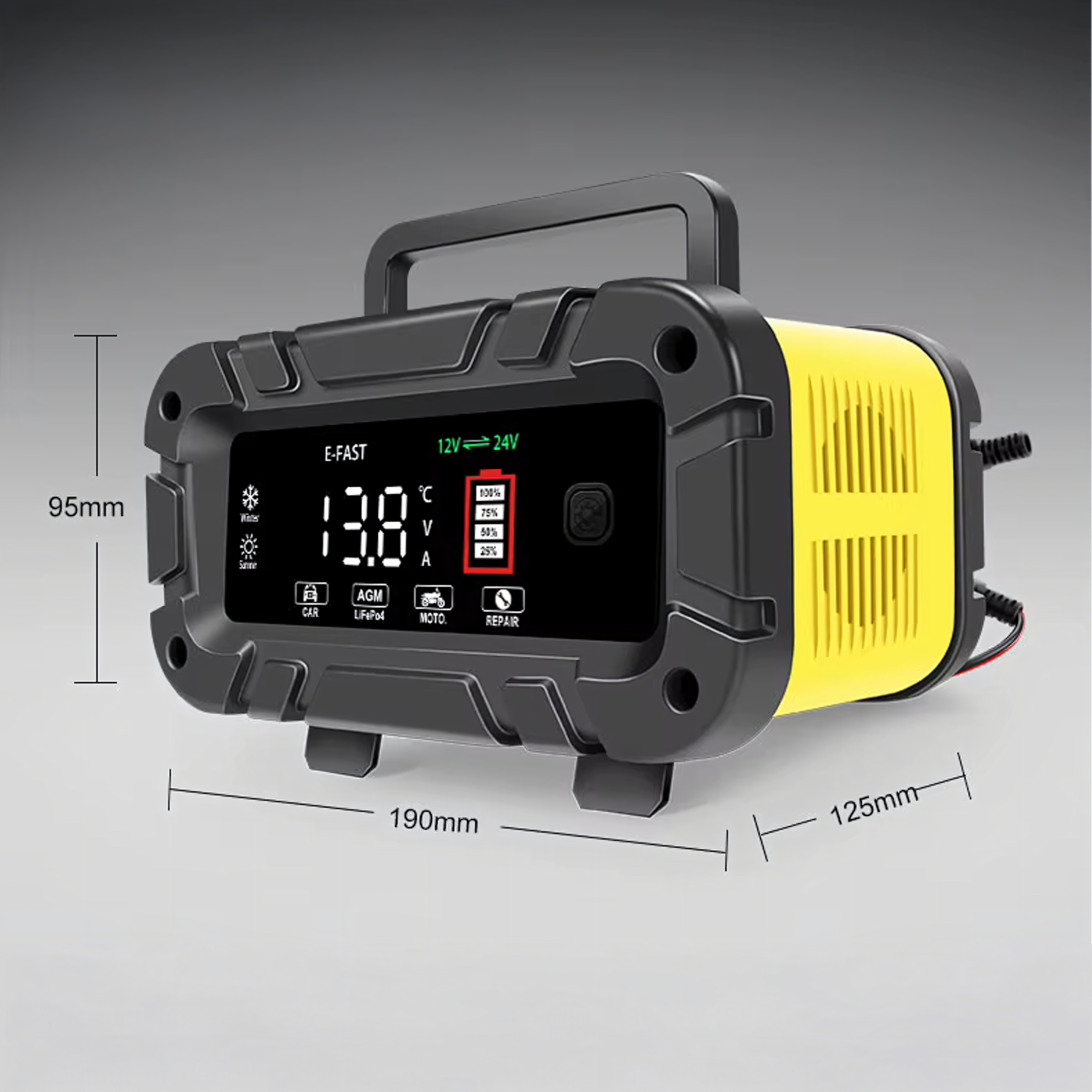 Rectifier with Booster 12V/24V 10A – сучасний мікропроцесорний зарядний пристрій для LiFePO4, AGM, гелевих, кальцієвих і свинцево-кислотних акумуляторів. Завдяки інтелектуальному чіпу, 7-ступеневій зарядці та численним захистам він забезпечує швидку, безпечну та ефективну роботу за будь-яких умов.