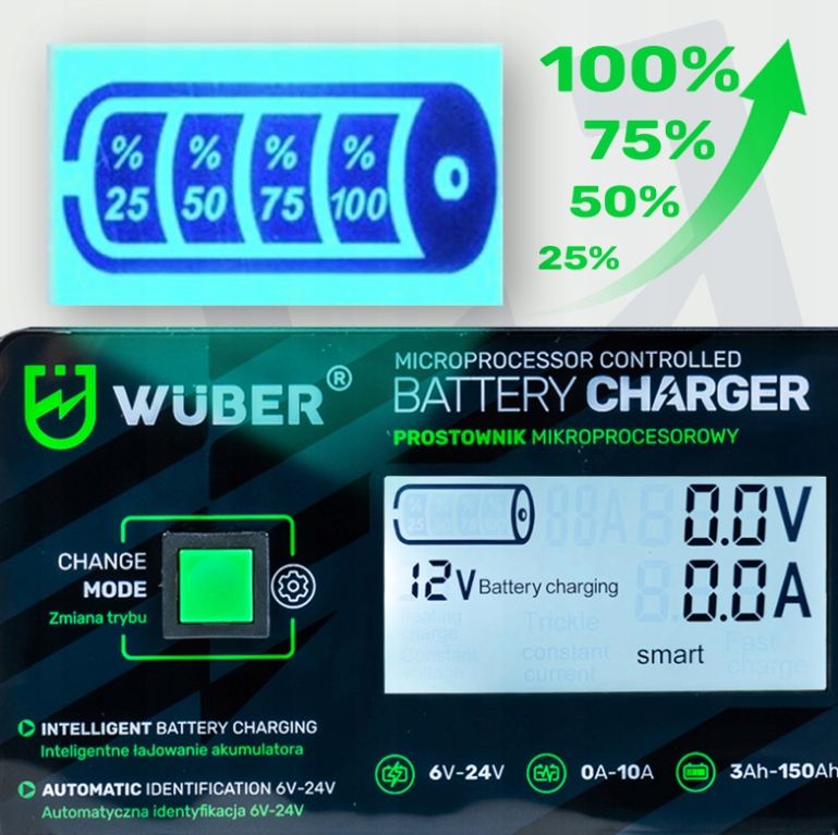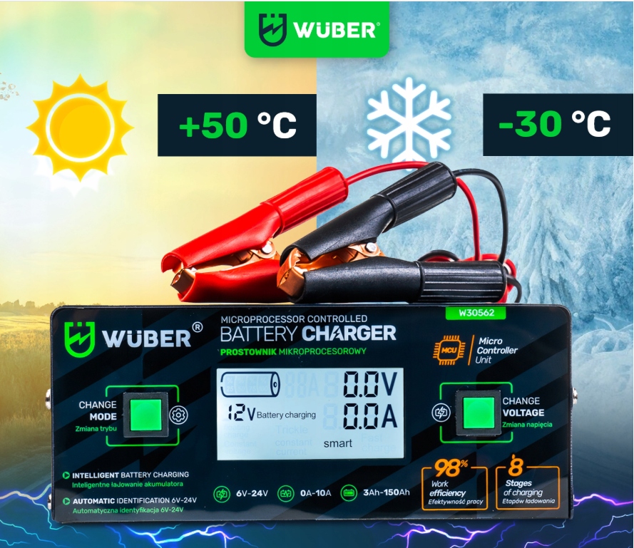 Мікропроцесорний випрямлячWUBER - це сучасний інтелектуальний пристрій для заряджання акумуляторів легкових автомобілів, мотоциклів і техніки.