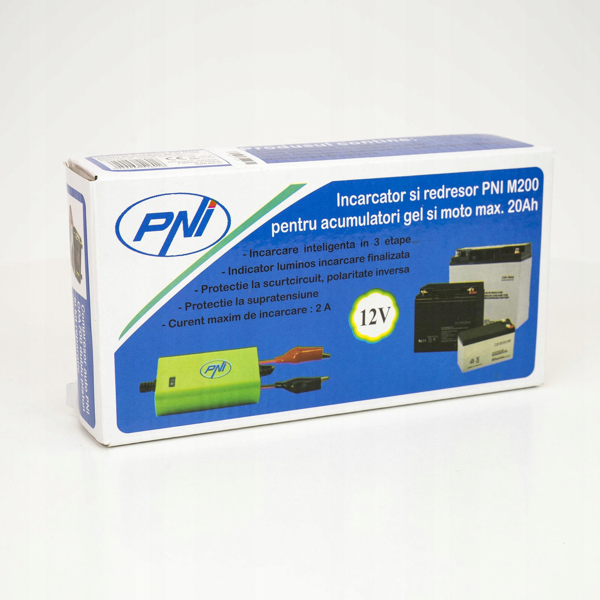 Випрямний зарядний пристрій PNI M200 забезпечує 3-фазне інтелектуальне заряджання свинцево-кислотних і гелевих акумуляторів на 12 В зі зниженою ємністю, тобто максимум 20 А·год.