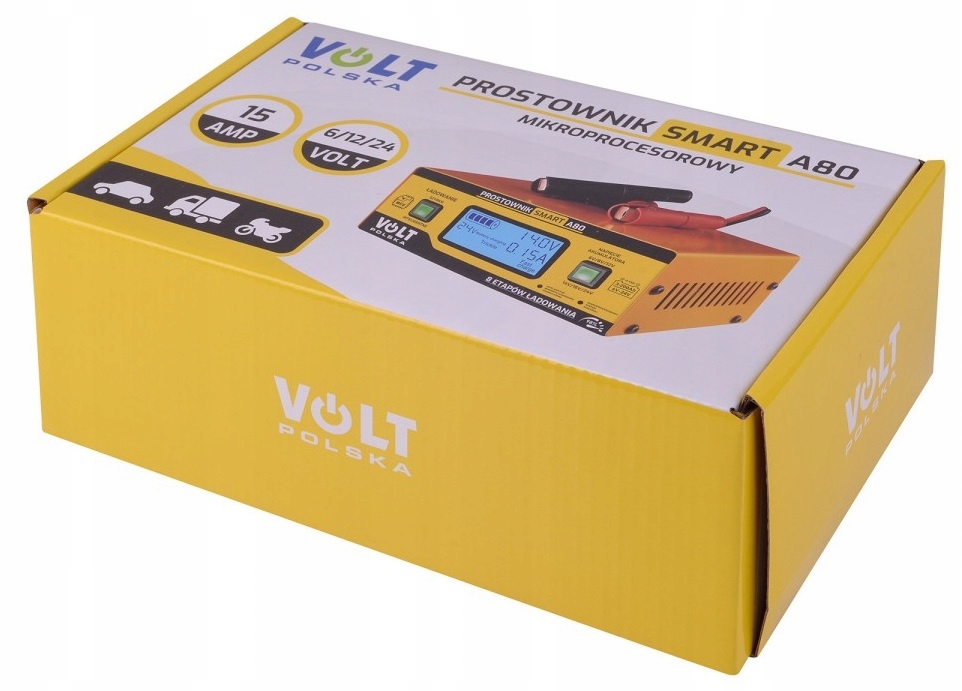 Випрямляч SMART 6V/12V/24V 15A A80 є першим зарядним пристроєм на ринку з мікропроцесорною системою управління та керування. ШІМ з можливістю зарядки акумуляторів до 24Ві можливістю вибору нестандартних типів напруги акумуляторів. Завдяки інтелектуальному налаштуванню параметрів він дозволяє регенерувати розряджену батарею.