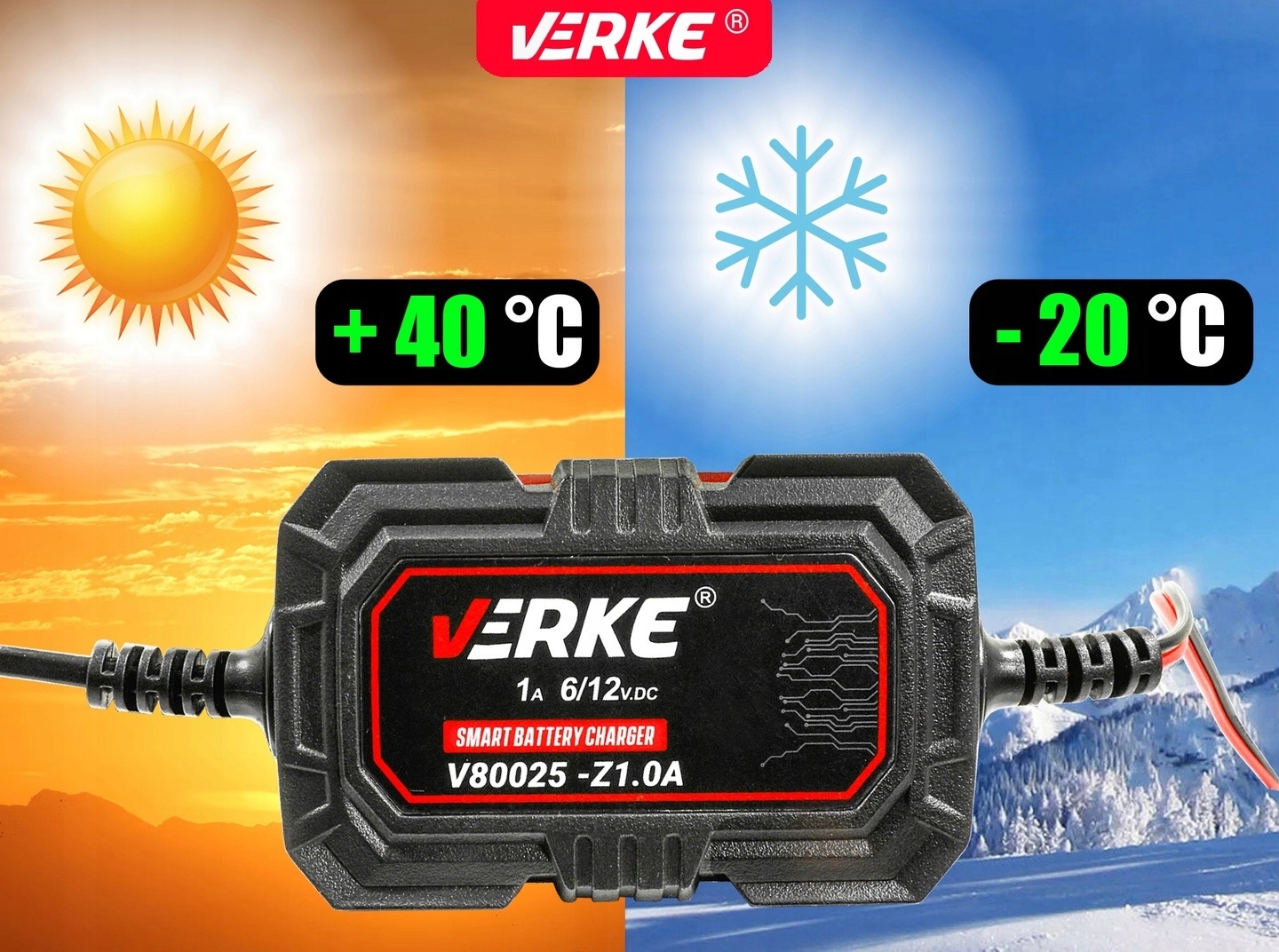 ✅ Робота в широкому діапазоні температур (-20°C) до +40°C) - безвідмовна робота незалежно від погодних умов.