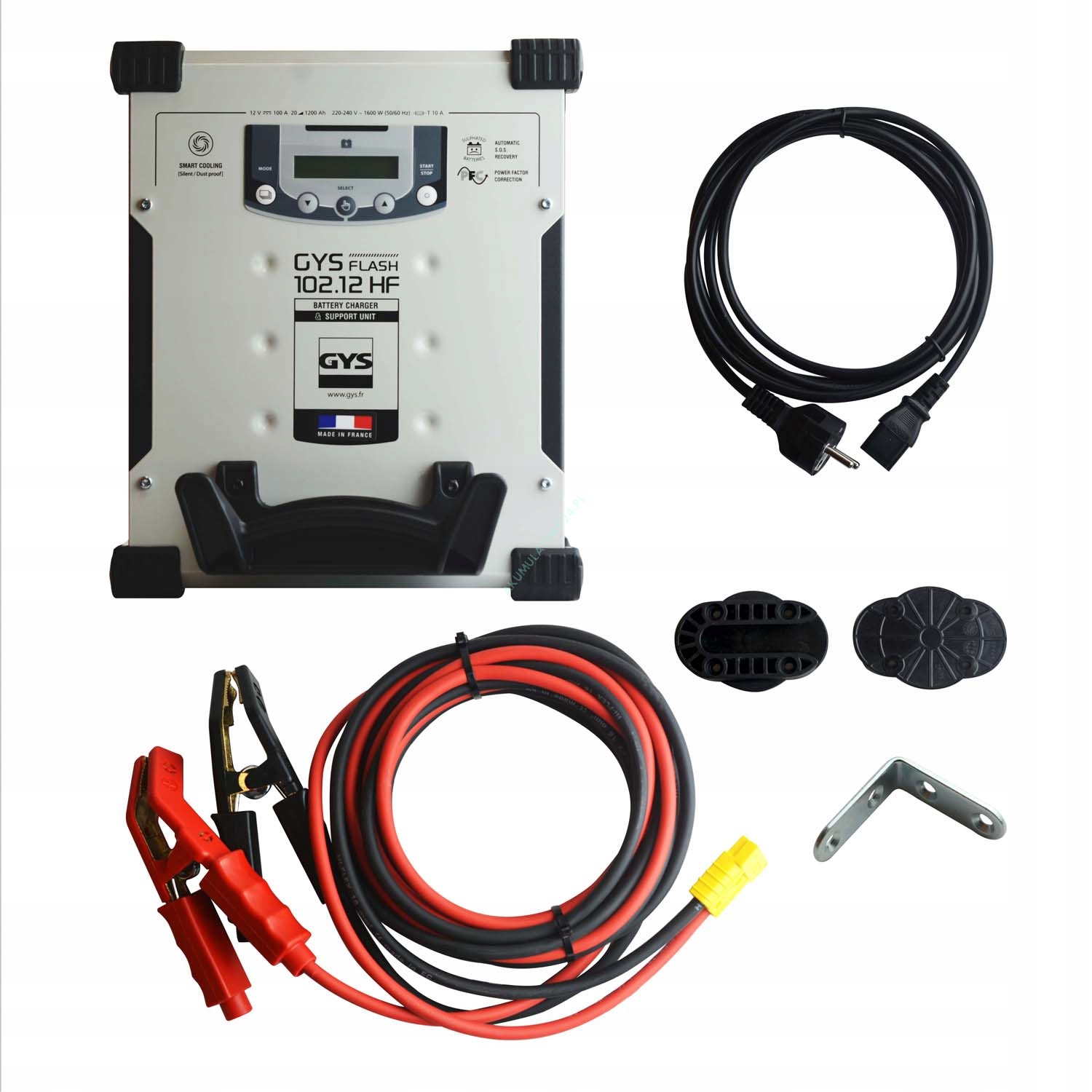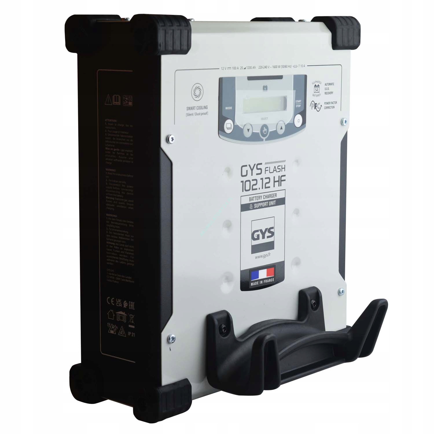 GYSFLASH 102.12, розроблений спеціально для монтажу на стіні чи автомобільному підйомнику, є дуже потужним зарядним пристроєм, здатним видавати струм до 100 А. GYSFLASH 102.12 підтримує стабільну напругу акумулятора 12 В. Він забезпечить найкращий цикл заряджання, рекомендований для підтримки напруги в найсучасніших автомобілях на ринку.