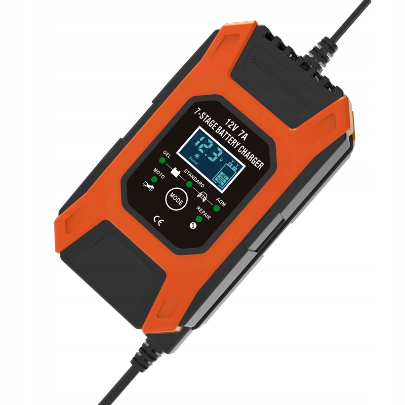- 7-ступеневі зарядні пристрої підходять для більшості типів акумуляторів, включаючи кальцієві, гелеві, AGM, вологі, свинцево-кислотні акумулятори. Вони також можуть допомогти відновити розряджені та сульфатовані батареї.