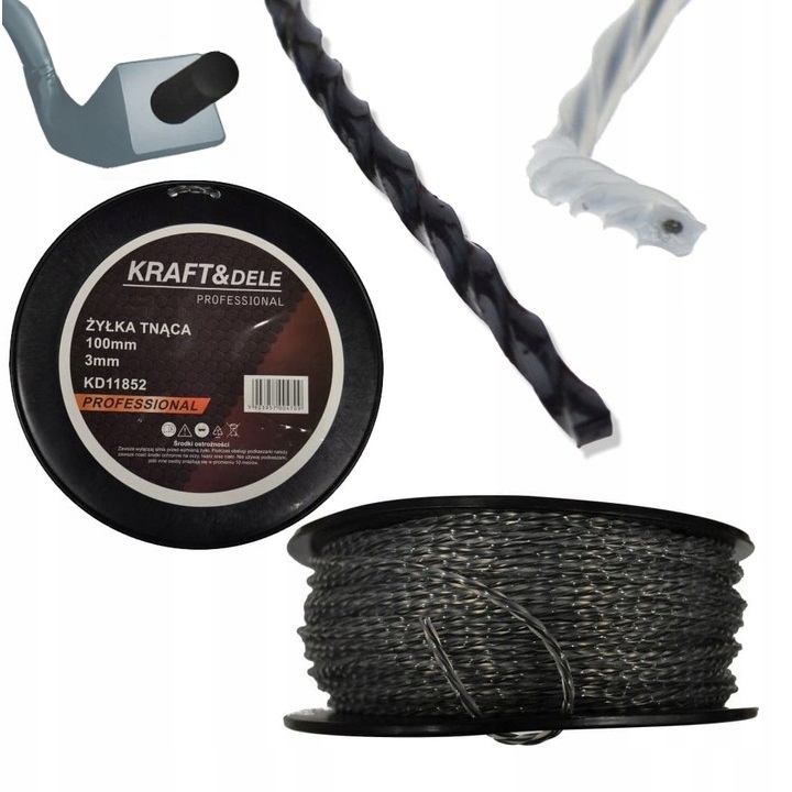 Лінія, призначена для коней та дихання. Він характеризується чудовою міцністю, що робить його більш ефективним, ніж звичайні лінії. Високоякісна риболовецька лінія використовується в скутах та кониках у таких галузях, як сільське господарство, садівництво. Матеріал, що використовується під час виробництва рибальської лінії, міцний, сильний і стійкий до стирання. Завдяки цьому можна працювати в товстій твердій рослинності: бур’яни, ожина. Перехрестя рибальської лінії забезпечує оптимальний ефект коника при скошуванні.