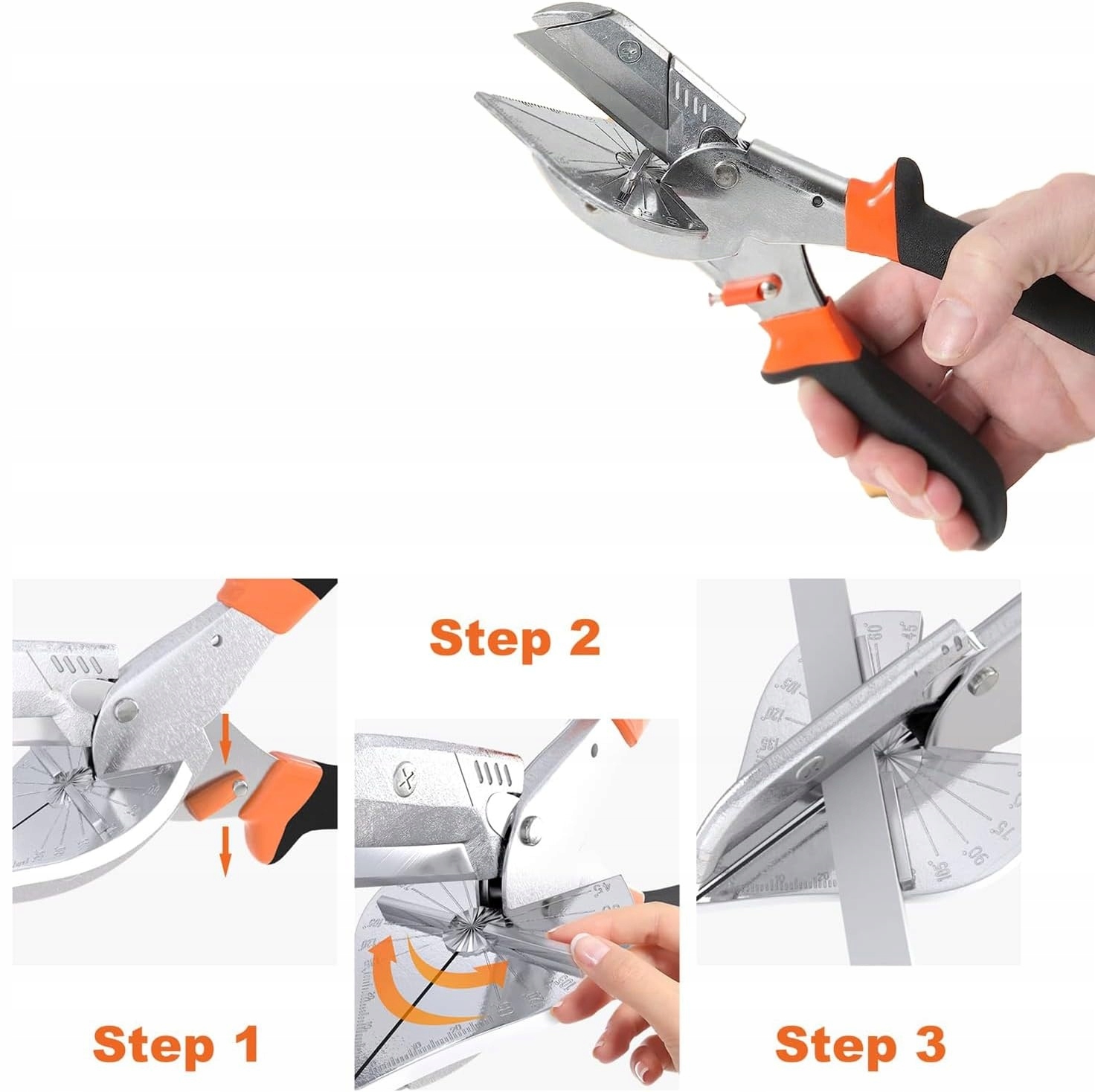 Точне різання: кутові ножиці мають високу точність і чітку та точну поверхню, що забезпечує ретельне зріз. За допомогою регульованого повзунка, розміщеного на поверхні шкали, ви можете регулювати кут різання від 45 ° до 135 °.