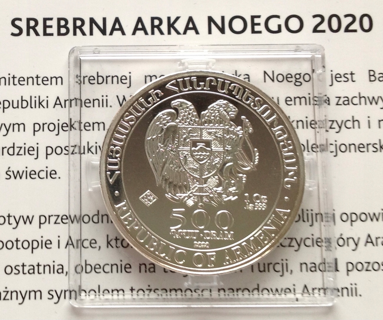Вірменія 500 драмів 2020 Noah's Ark Ounce Ag UNC