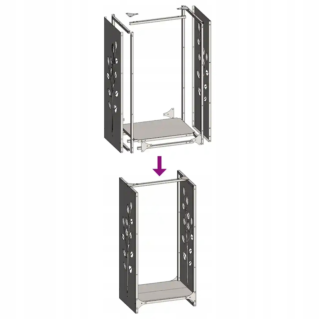 - Привабливий дизайн: Цей власник дров з унікальним та стильним зовнішнім виглядом поєднує функціональність з естетичними цінностями, підкреслюючи елегантність інтер’єру та зберігаючи деревину. H)