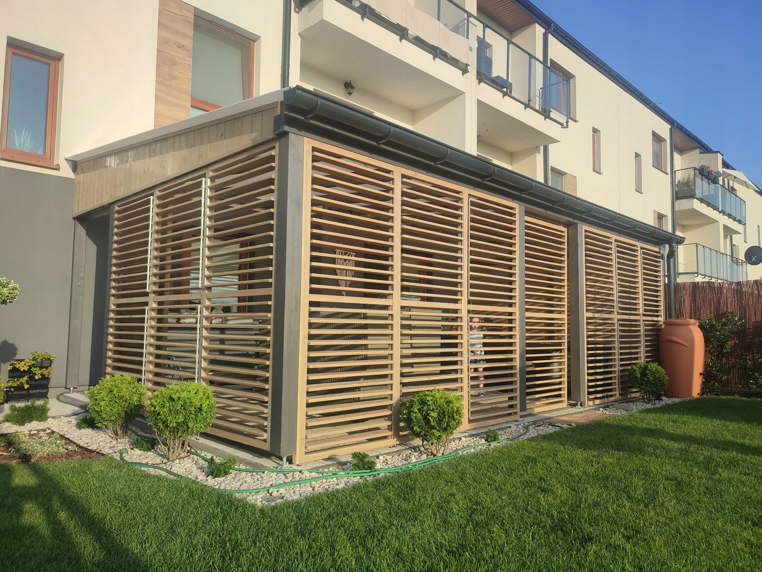 Сучасні будинки з терасою часто вимагають інноваційного доповнення, такого як дерев’яні жалюзі. Наша продукція ідеально підходить для такого типу будівель, вони відрізняються надзвичайною естетичністю та неймовірною функціональністю. Вони ідеально підходять для будь-якої тераси чи балкона.