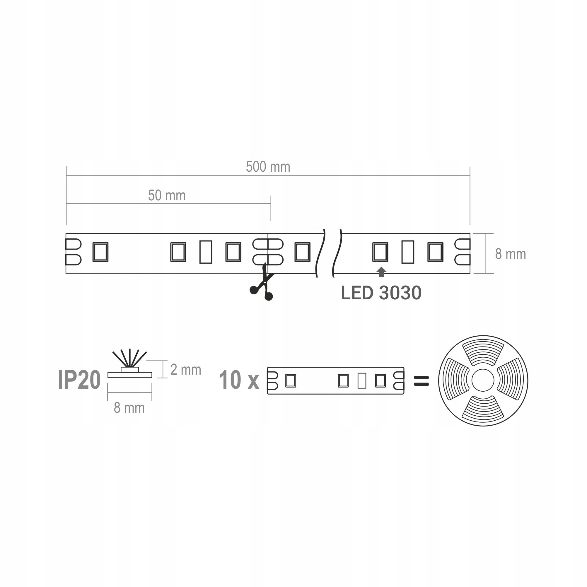 Продукт, оснащений 3 -метровою клейкою стрічкою, що полегшує кріплення. Крім того, він має паяний кабель довжиною 1,5 метра з кінцем міні -світлодіодної пробки. 4