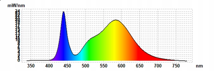 Світлодіодний світлий білий колір пройшов фотометричний тест у лабораторії. Наш продукт ретельно досліджували за допомогою фотометра, який дозволив нам отримати точну діаграму спектру світла, який надає ця стрічка. Отримані результати підтверджують, що наша світлодіодна стрічка забезпечує оптимальний спектр світла, необхідний для ефективної підтримки росту рослин, яку можна побачити в прикріпленій діаграмі з випробувань на стрічці.