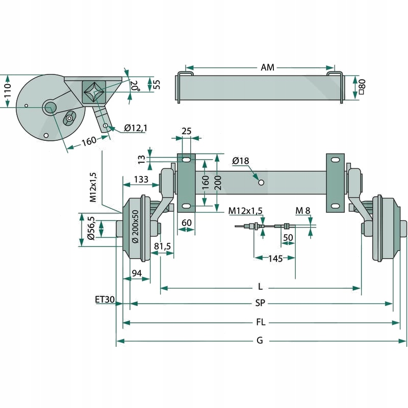 category: construction and replacement parts for car trailers up to 3.5 t/ invasion, axles and accessories • al-KO-BPW / Гойдалки вісь з гумовими бамперами / гальмом, тип: CB1355, наголос на осі 1350 кг, колесне гальмо S 2005-7 Rask