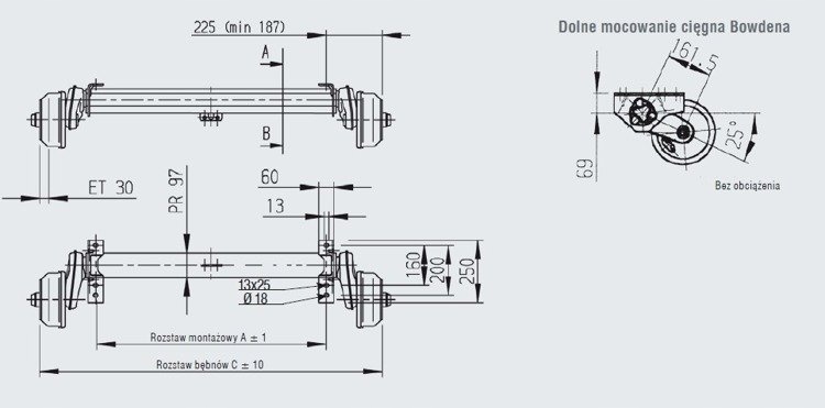 Оригінальна вісь з гальмами для причепів AL-KO - технічні дані