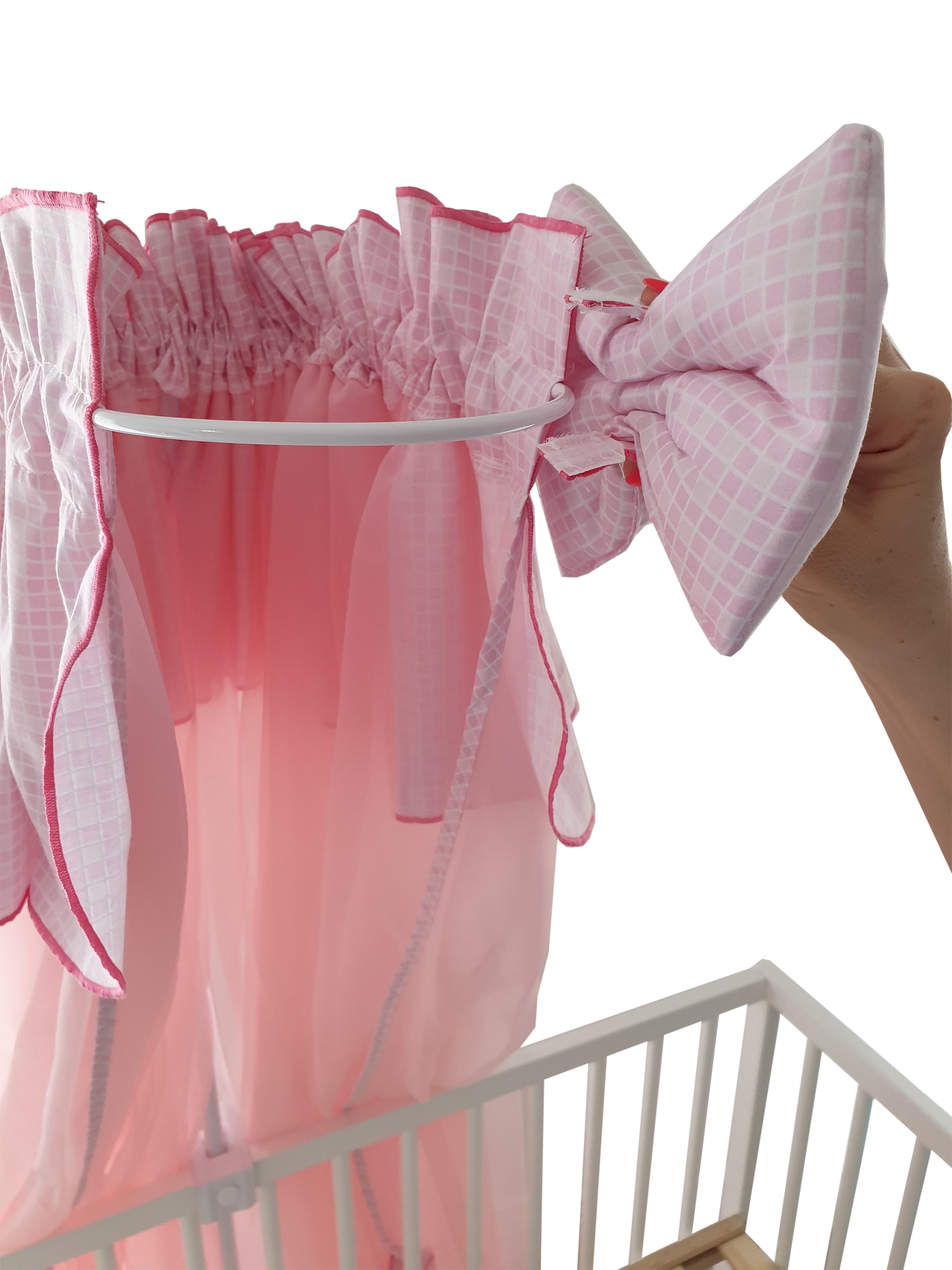 Кронштейн і ручки не мають гострі краї, чому б вам не знищити постільну білизну чи москітну сітку.
