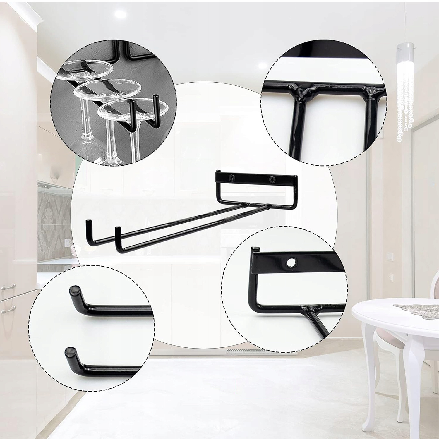 - Підвісні стійки для винних келихів легко встановлюються під шафами, де ви хочете акуратно та зручно зберігати набори келихів, захищати келихи від розбиття чи тріщин, а також підтримувати їх у чистоті та без пилу.