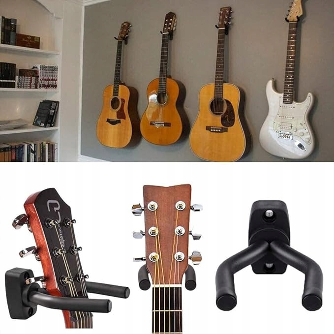 ✅Елегантний і універсальний зовнішній вигляд: Класичний чорний колір вішалки ідеально поєднується з різними типами гітар.