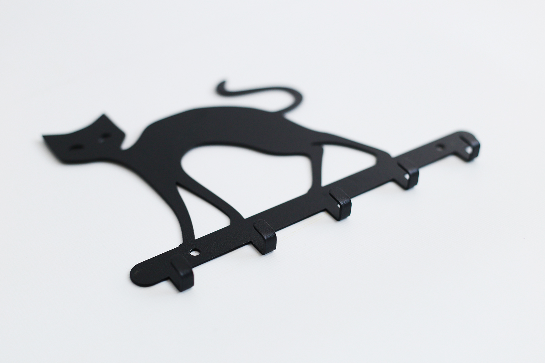 Вішалка для любителів котів. Його можна встановити в холі, ванній або офісі. Наші вішалки виготовлені з міцного листового металу товщиною 1 мм, що характеризується довговічністю вище середнього. Додатковою перевагою є порошкове фарбування з обох сторін, що дозволить насолоджуватися красою нової вішалки роками. Вішалка постачається з двостороннім скотчем, а два отвори дозволяють кріпити її за допомогою монтажних шпильок.
