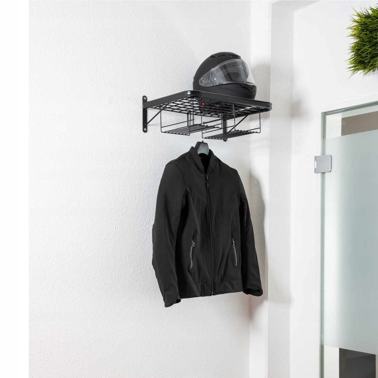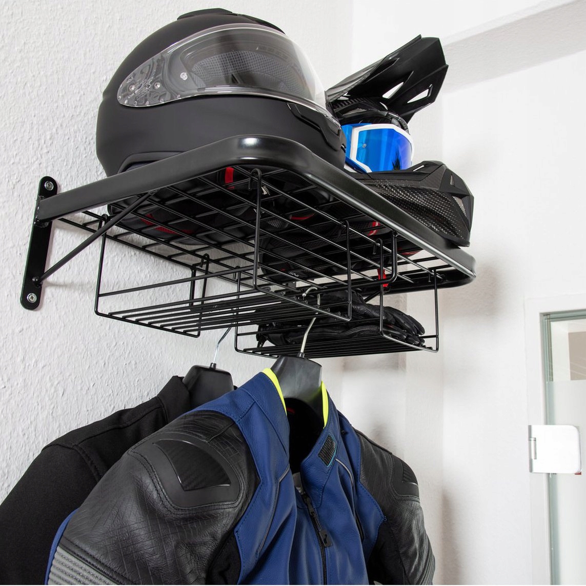 Ідеально підходить для гардеробу чи гаража, щоб весь ваш мотоциклетний одяг був під рукою та красиво виставлений. Розрахований на двох осіб, він має місце для двох шоломів, двох пар рукавичок і спеціальної рейки для підвішування курток.