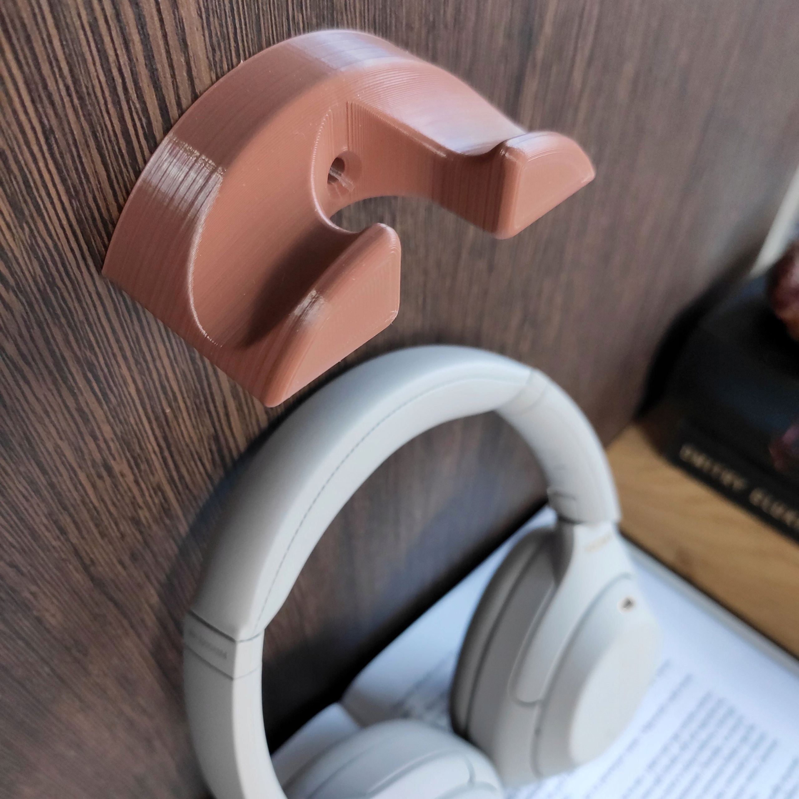 Ми вибрали для неї Sony WH-1000XM3 із системою активного шумопоглинання, і вони стали її улюбленими навушниками. Оскільки я нещодавно почав виготовляти вішалки для навушників на замовлення, вона попросила мене зробити їх для її нової пари. Мушу зізнатися, що я майже ніколи не кажу «ні», коли він мене просить щось зробити, і тепер я міг не тільки порадувати дружину, але й розширити свою пропозицію. Тож я розробив цю нову вішалку для її нової моделі XM3 із більш м’якими вигинами та обтічними краями. Як і мою вішалку Bose, її можна прикріпити до стіни, прикрутити до книжкової полиці чи прикріпити до холодильника, але вона також менша, а отже, навіть більш непомітна, ніж її старший брат Bose. Я також зробив усе можливе, щоб захистити губку на оголов’ї XM3 від деформації – форма моєї вішалки дозволяє їй ідеально підходити до губки. Це також дозволяє користувачеві знімати навушники лише одним пальцем.