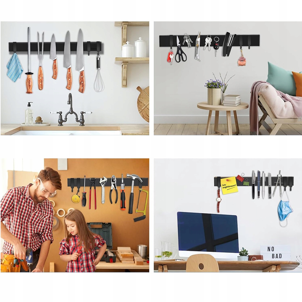Довжина 40 см забезпечує достатньо місця для зберігання інструментів, а три знімні гачки забезпечують додаткову універсальність, ідеально підходить для підвішування невеликих предметів, таких як кухонні гаджети, ключі чи рукавички.