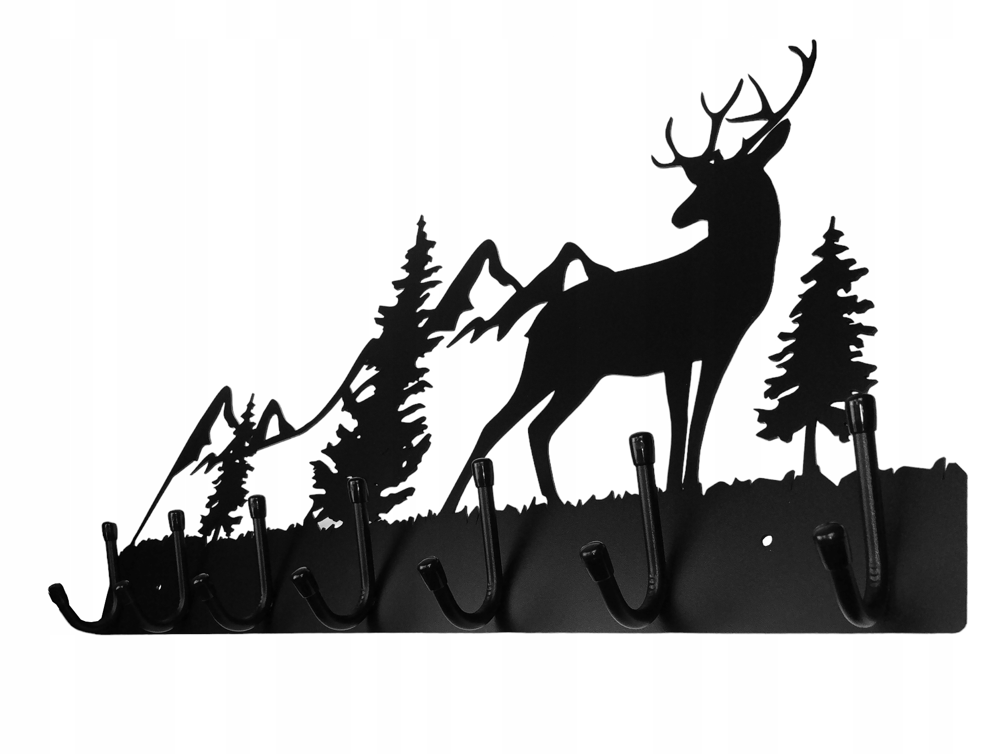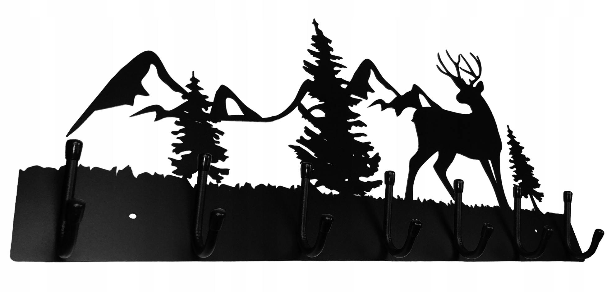СУЧАСНА СТАЛЕВА НАСТІННА ВІШАЛКА - ПЕЙЗАЖ З ОЛЕНЯМИ - 7 ГАЧКІВ.