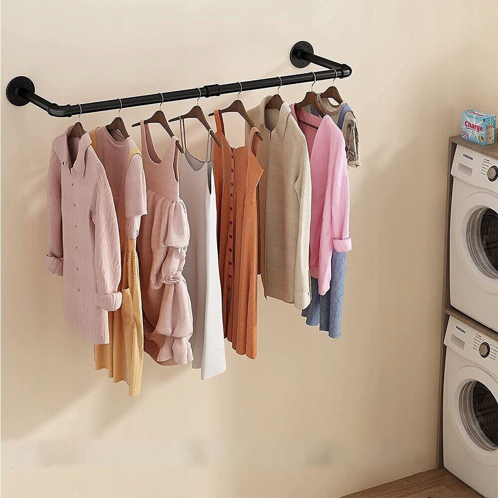 Промисловий дизайн в стилі ретро: ця настінна вішалка для одягу виготовлена з високоякісної залізної труби, має крутий промисловий вигляд, гладку матову чорну поверхню, індустріальний шик, сучасну сільську місцевість у стилі стімпанк і міські меблі. Його унікальний і вінтажний вигляд ідеально вписується у вашу кімнату, але також може використовуватися в коридорах, під’їздах, спальнях, шафах, пральнях або балконах.