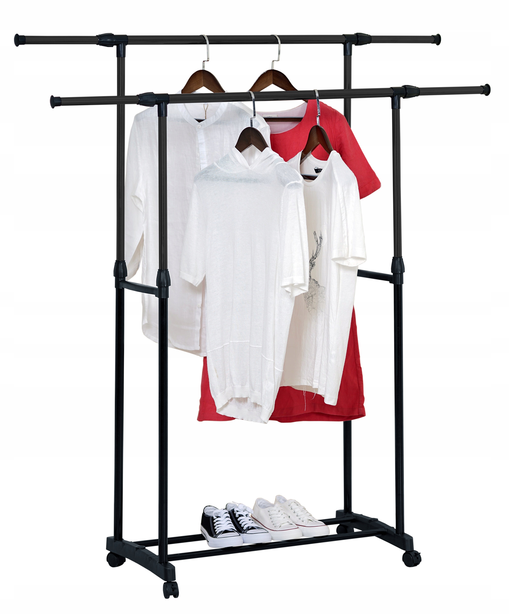 ВІШАЛКА ДЛЯ ОДЯГУ СТОЯЧА НА КОЛЕСЦЯХ, МОБІЛЬНА, ДВІЙНА РЕГУЛЮВАННЯ, ЧОРНА
