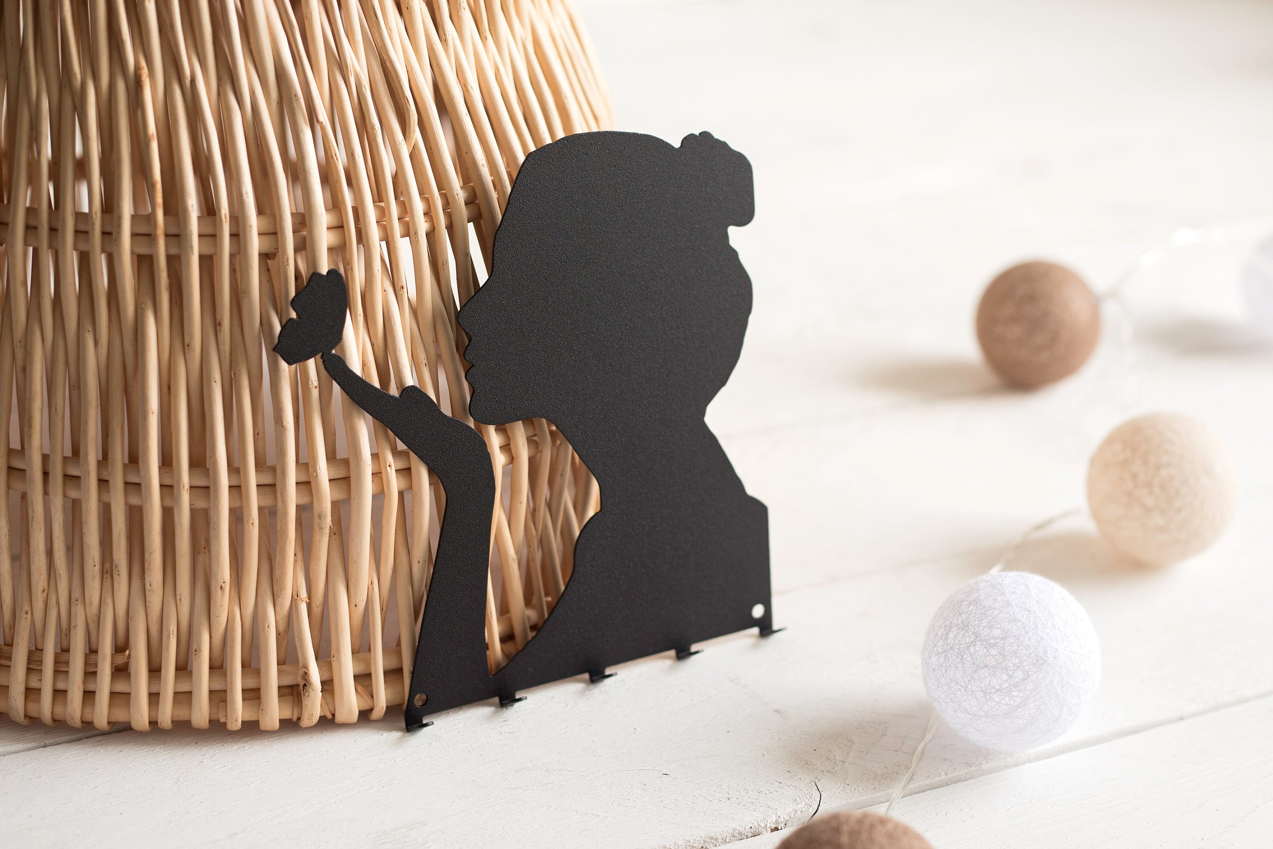 Вішалку з мотивом дівчини можна повісити в коридорі, спальні, гардеробній або ванній кімнаті, миттєво забезпечуючи ідеальне місце для зберігання прикрас, сумок, шарфів та інші дрібниці.. Наші вішалки виготовлені з міцного листового металу товщиною 1 мм, який характеризується довговічністю вище середнього, що в поєднанні з порошковим покриттям дозволить вам насолоджуватися красою вашої нової вішалки протягом багатьох років. Дуже легко зібрати.