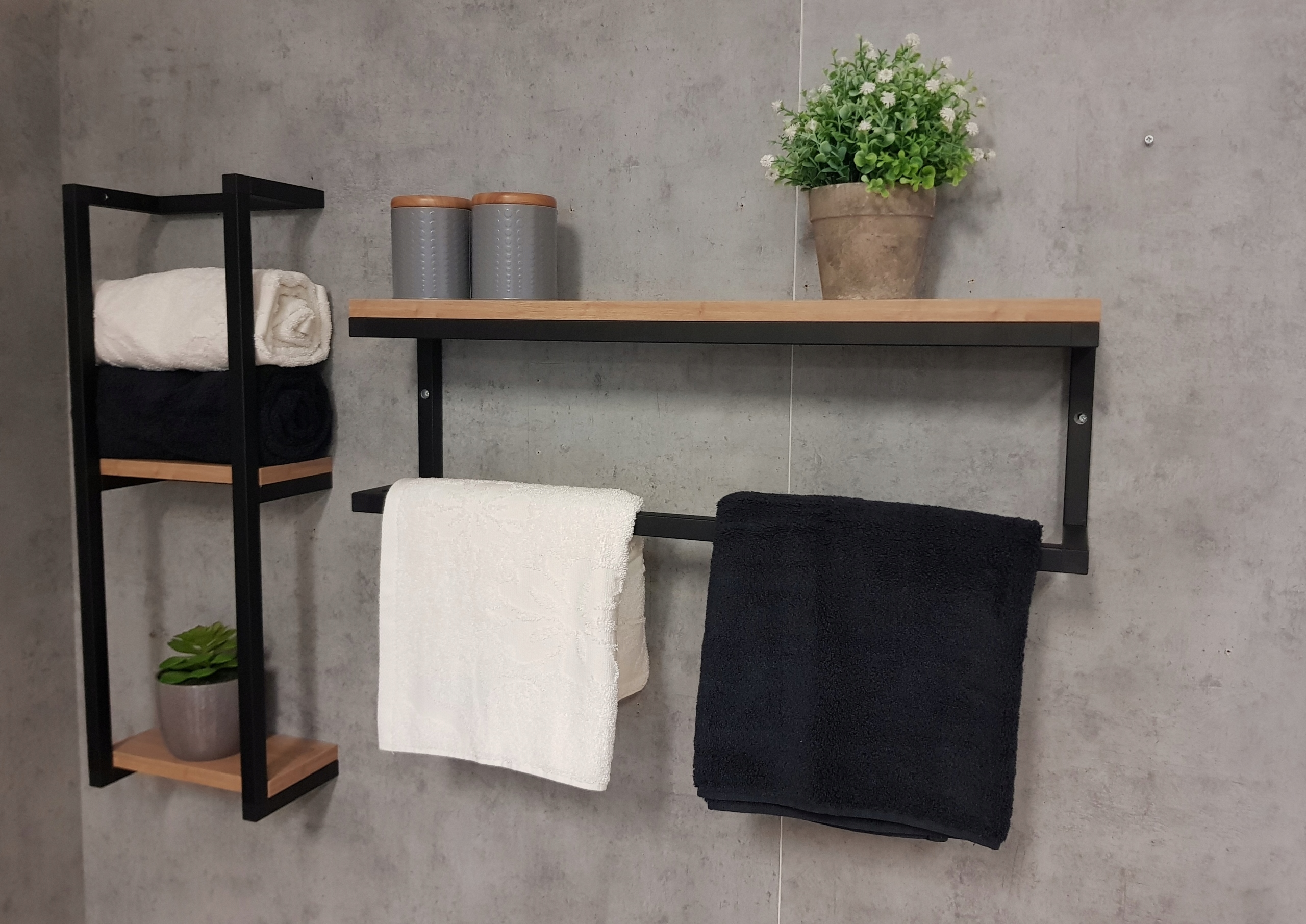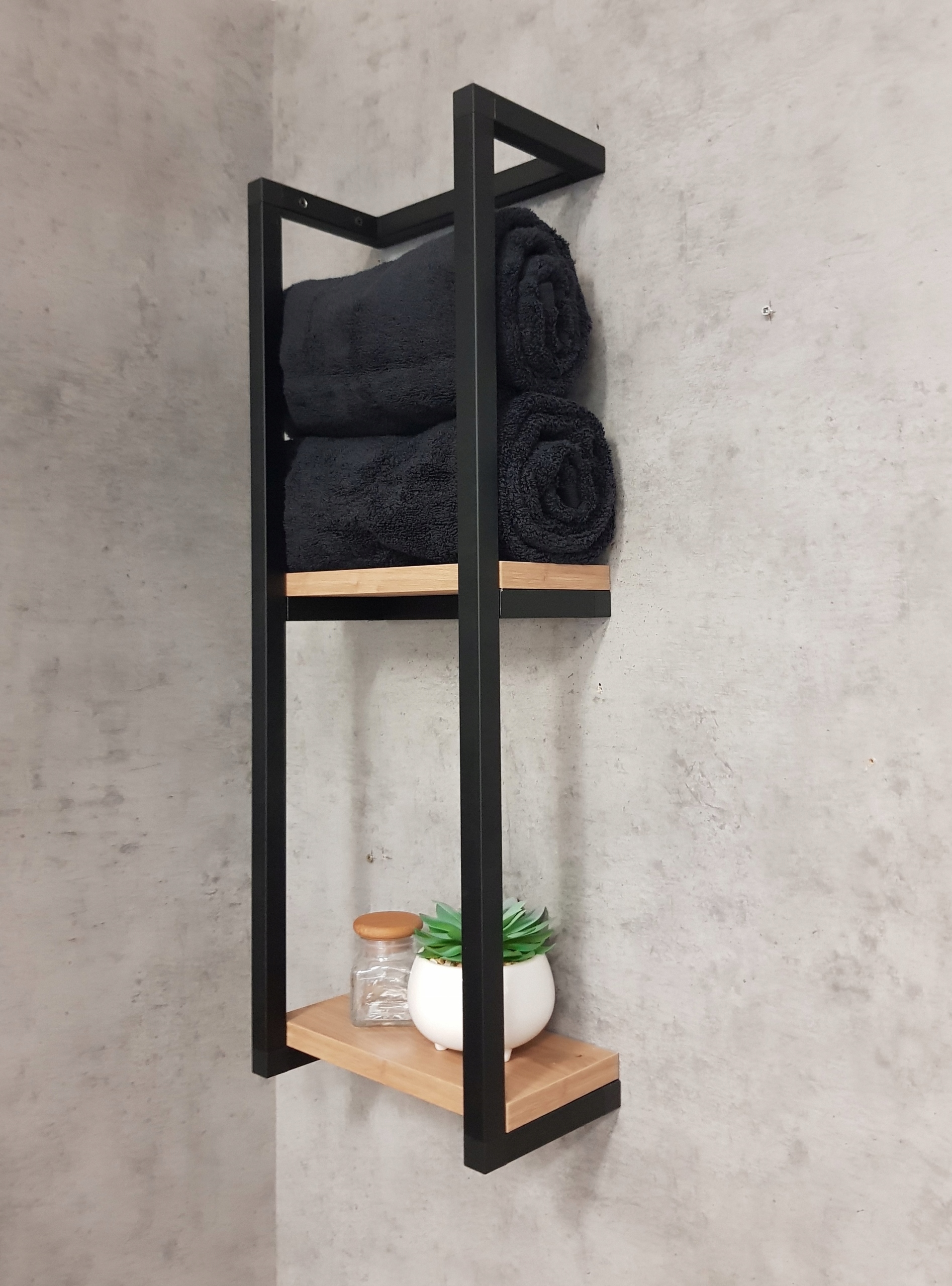 Вішалка для рушників в стилі лофт з полицями з дуба