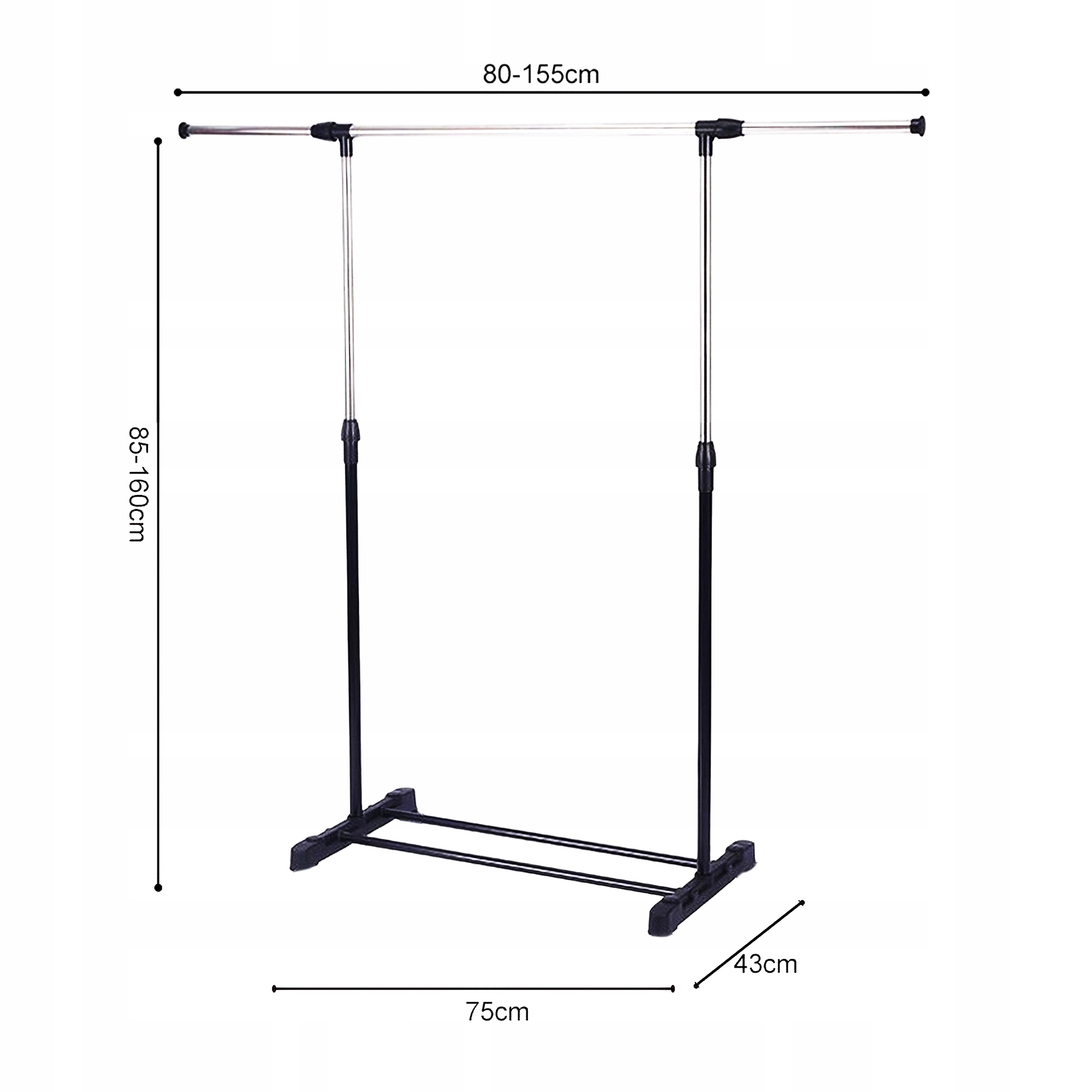 Стильна гардеробна стійка — ідеальний спосіб зберігання одягу. Підставка має довгу штангу, на яку зручно повісити вішалки для одягу. Підставка розсувна, тому ми можемо адаптувати її до простору, який нам потрібно використовувати. Вудилище має максимальне навантаження 25 кг.