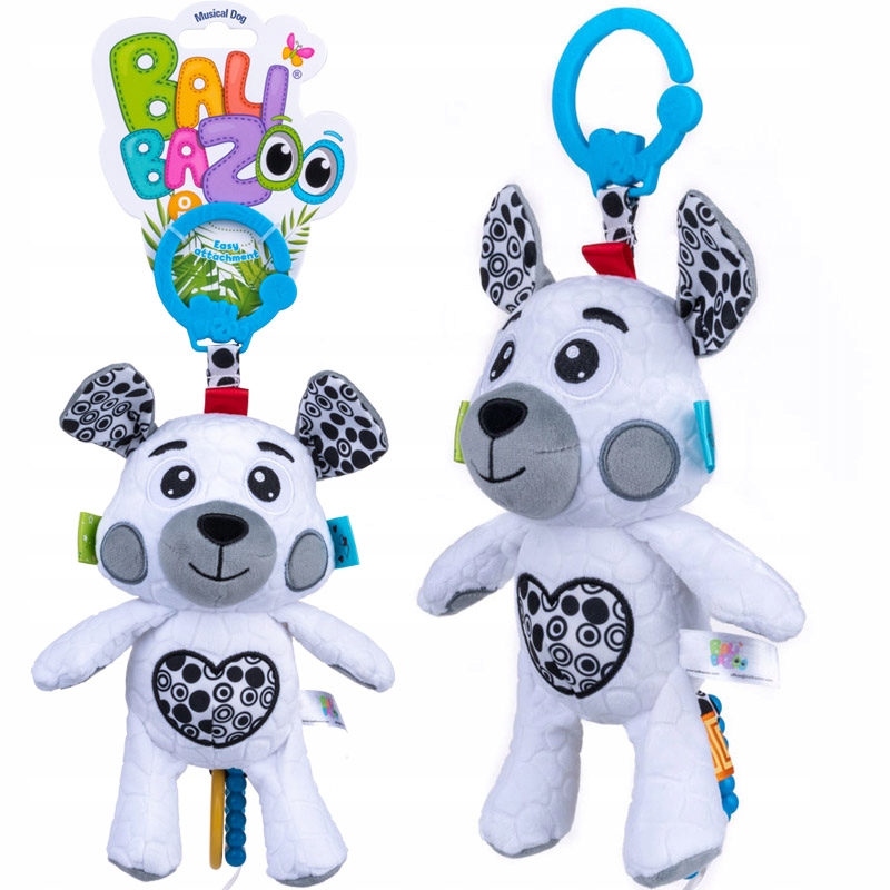 Друг собака забезпечить спокійний сон вашої дитини. Він прикрашений контрастними візерунками, які стимулюють зір малюка, і різнокольоровими етикетками з різноманітною текстурою. Прорізувачі, прикріплені до іграшки, полегшать біль у яснах у малюка. Собака грає красиву колискову, яка допоможе дитині заснути, а практична пряжка дозволить їй зручно розташуватися в будь-якому дитячому ліжечку або колясці.