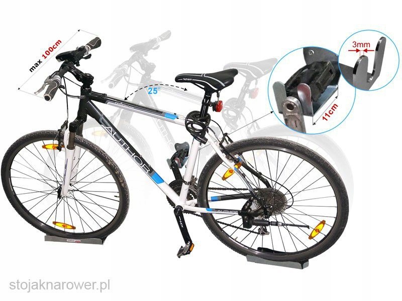 Особливість, яка вирізняє цю модель вішалки, полягає в її міцній і довговічній конструкції, яка складається з тримача велосипедної педалі (3 мм листовий метал) і двох металевих листів товщиною 2 мм, що підтримують колеса велосипеда. Додатково оснащений обмежувачами для запобігання руху коліс. Рукоятка повністю сумісна з педалями SPD.